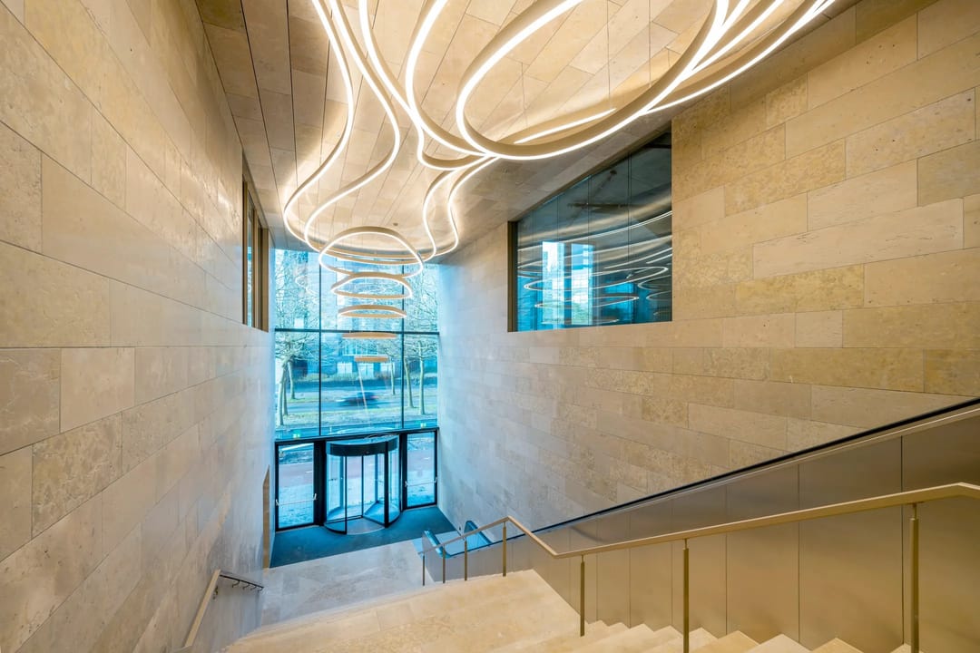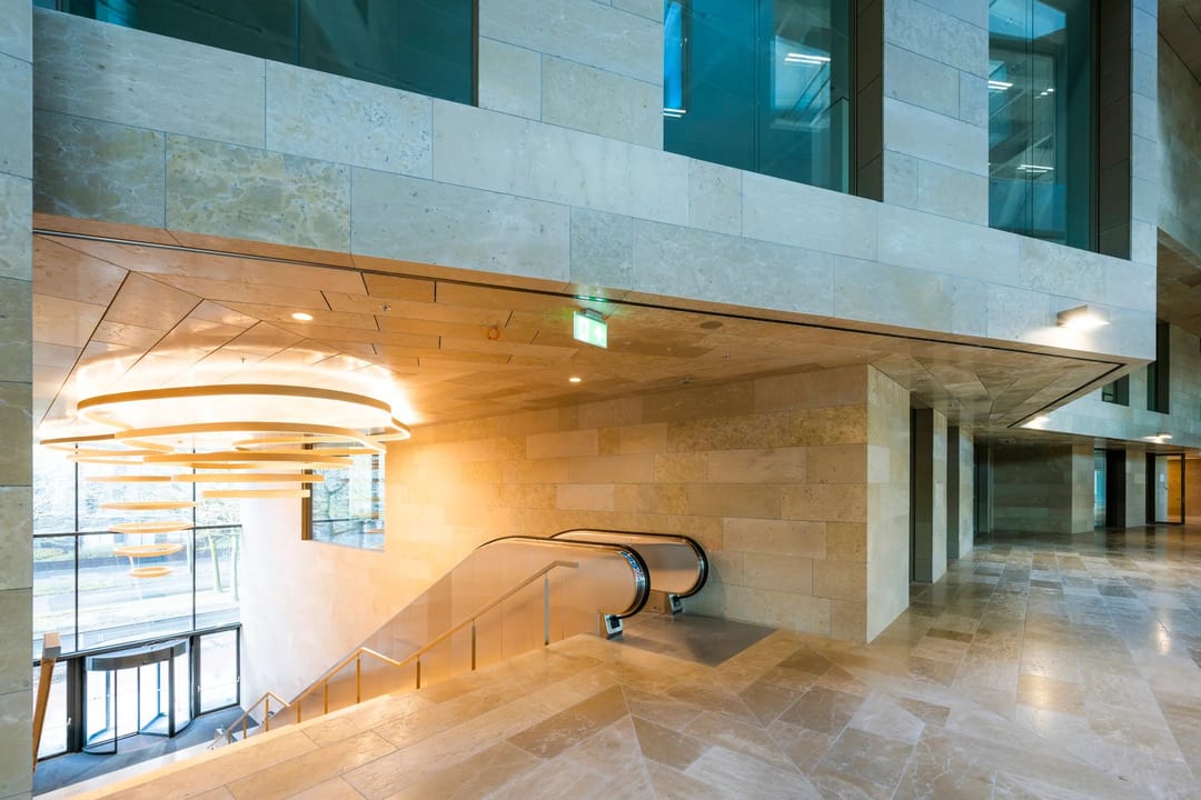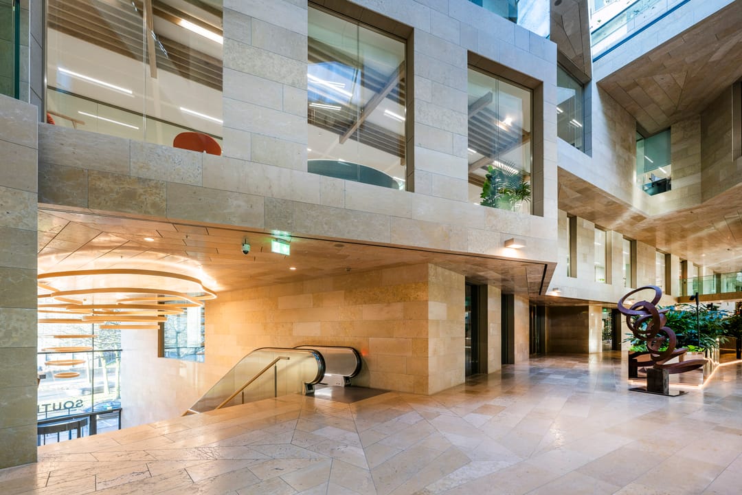 - The atrium is accessible from Beethovenstraat through a very wide staircase and escalator