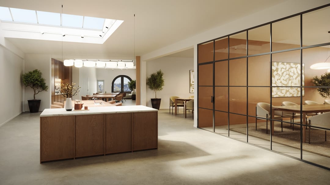 Deze voormalige garage wordt op dit moment volledig gerenoveerd en verduurzaamd naar hoogwaardige kantoorruimte. De totale oppervlakte is circa 1.250 m², volledig gesitueerd op de begane grond. De ruimte is opgedeeld in 5 units met oppervlaktes van circa 90 m² tot 470 m² en ze kunnen desgewenst nog aan elkaar gekoppeld worden.