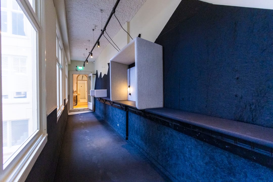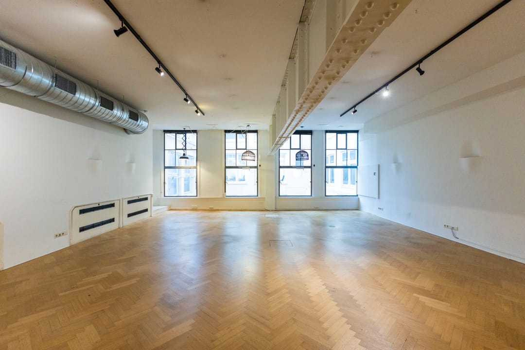 Wat deze ruimte bijzonder maakt is de prettige combinatie van karakter en licht. Aan de voorzijde zorgen de grote ramen met uitzicht over de Prins Hendrikkade voor veel daglicht, terwijl de vides in het midden van de verdieping extra openheid en lichtinval creëren. Hierdoor ontstaat een aangename werkomgeving voor teams die centraal in de stad willen werken.