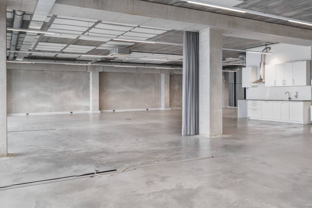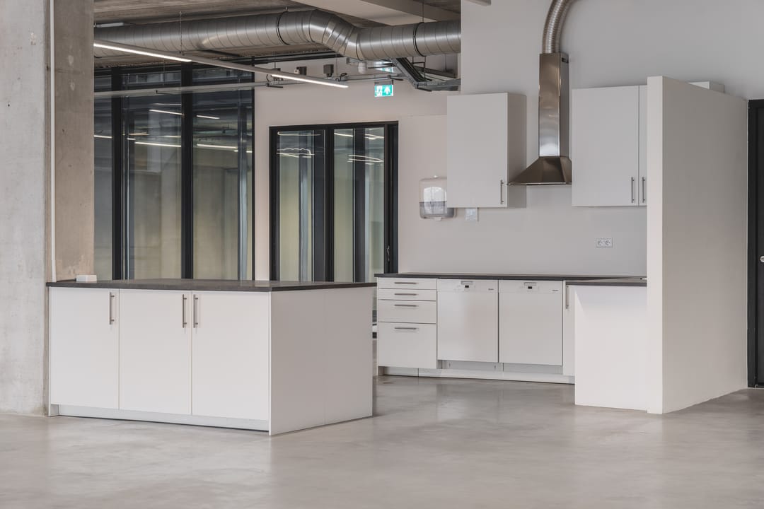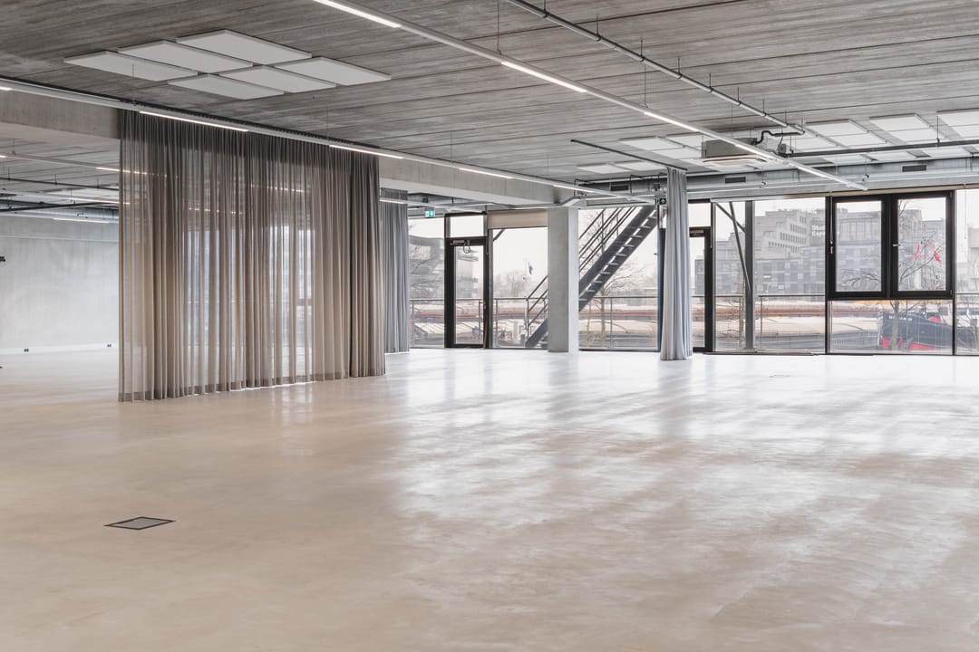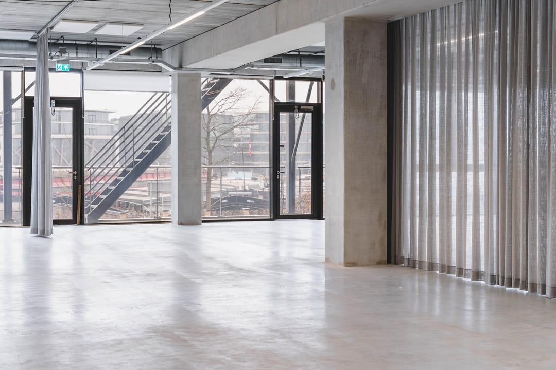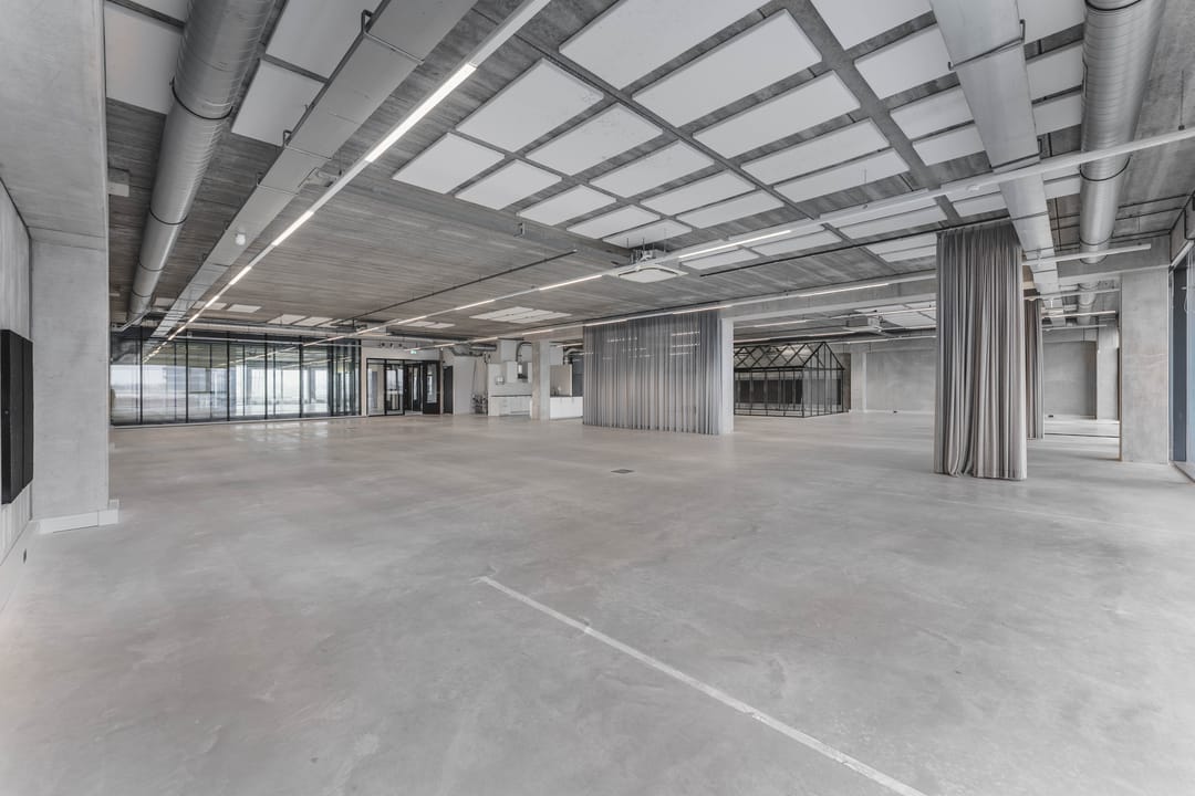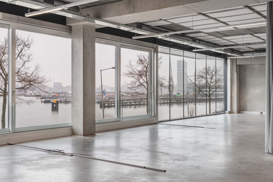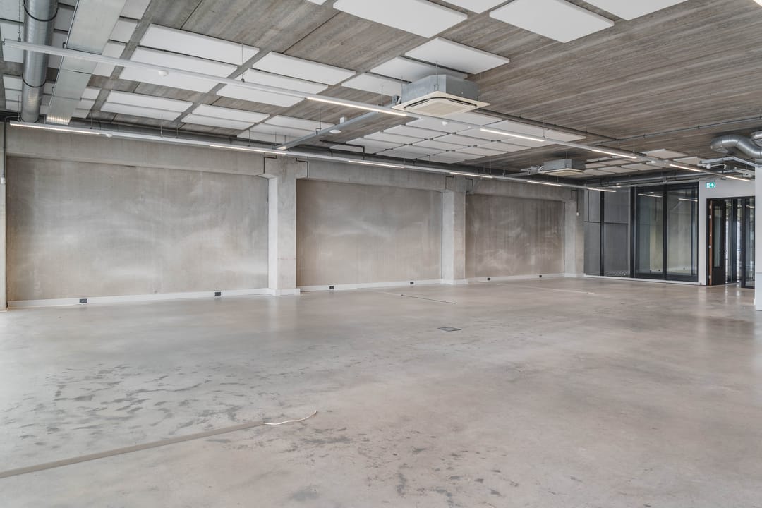 De ruimte kenmerkt zich door hoge plafonds, grote raampartijen en een industriële uitstraling. Zwarte kozijnen en strakke lijnen geven het kantoor een hoogwaardige en eigentijdse look. De kantoorvloeren worden leeg opgeleverd zodat een huurder volledige vrijheid heeft in indeling en branding.