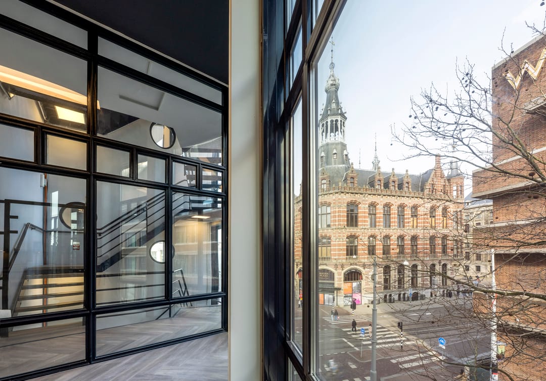 In het prestigieuze object “Maxwell House”, direct achter het Paleis op de Dam, tegenover Magna Plaza en naast het W Hotel, bieden wij hoogwaardige kantoorruimte aan. Dit representatieve hoekobject is gelegen op een absolute toplocatie aan de Singel, de Raadhuisstraat en de Spuistraat. Dankzij de grote raampartijen over de volledige hoogte beschikt de ruimte over een uitzonderlijke hoeveelheid daglicht en een prachtig, vrij uitzicht over de Amsterdamse binnenstad aan drie zijden. Het object is recent volledig gerenoveerd en afgewerkt op een hoogwaardig niveau, waarbij de sanitaire voorzieningen zijn uitgevoerd in natuursteen en marmer, en een moderne witte keuken is geplaatst in combinatie met marmeren accenten. De vloeren zijn voorzien van een stijlvolle visgraat PVC-afwerking, wat bijdraagt aan de representatieve uitstraling van het geheel.