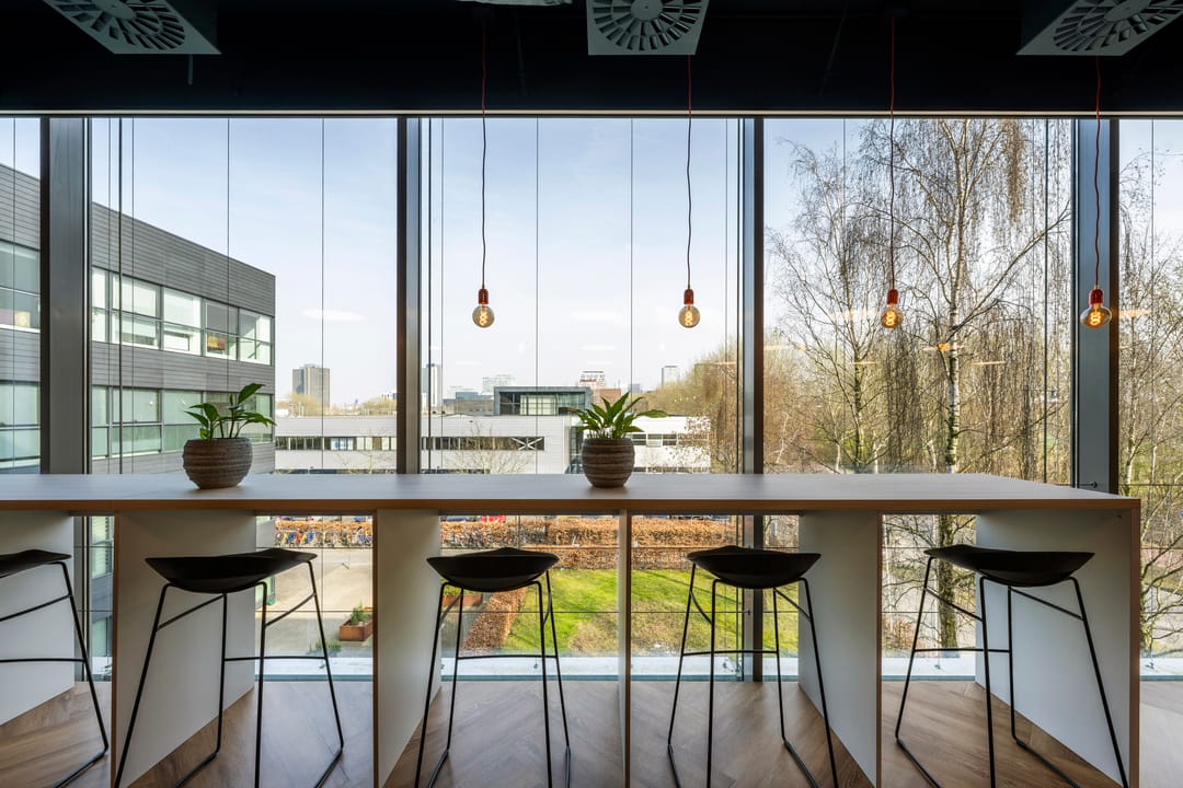Het gebouw beschikt over een representatieve entree met zitgelegenheden, een ruime keuken inclusief bar en diverse vergaderruimtes. Daarnaast is er een mogelijkheid tot het huren van 7 parkeerplaatsen. Het gehuurde heeft een mooi ingerichte buitenruimte. Het gebouw beschikt over energielabel A, als een van de weinige kantoorgebouwen in de omgeving.