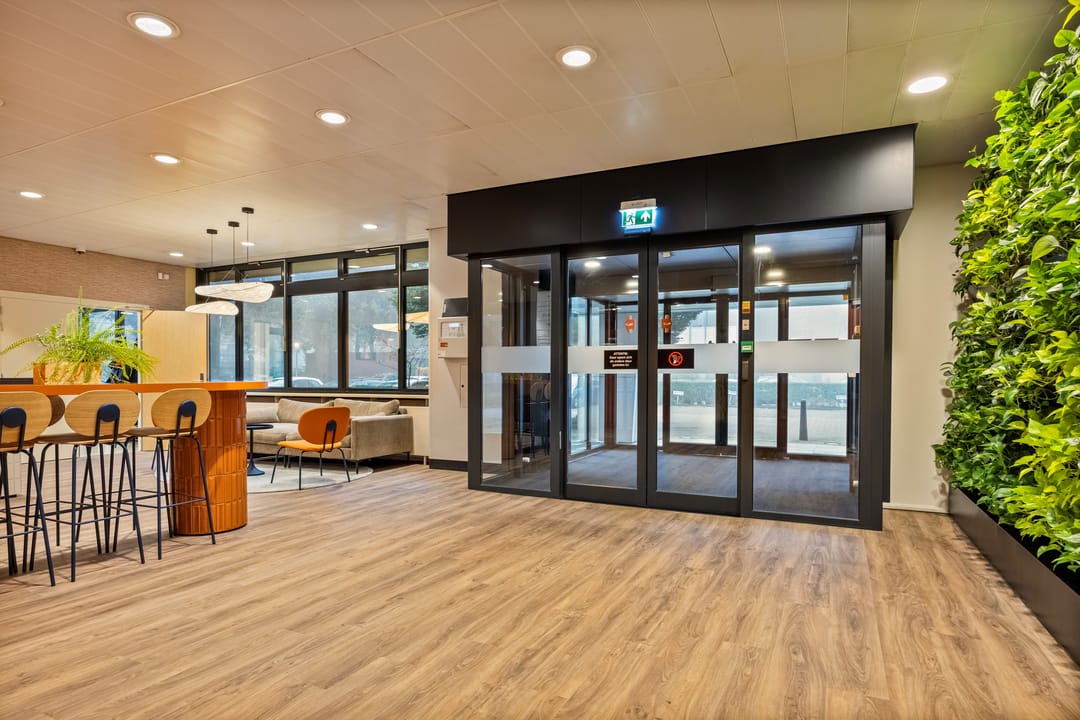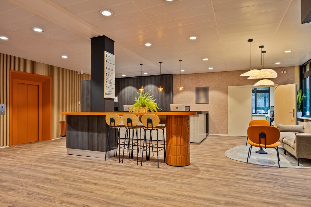 “La Reine” biedt een professionele werkomgeving met een representatieve lobby. In de directe omgeving bevinden zich diverse horecagelegenheden voor een lunch.