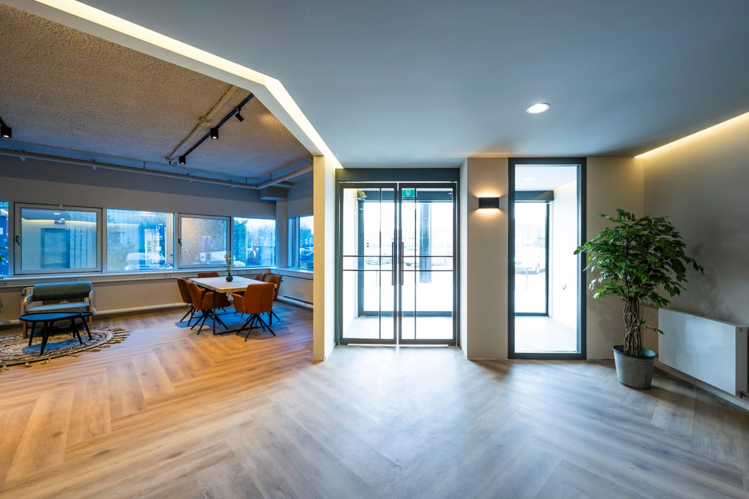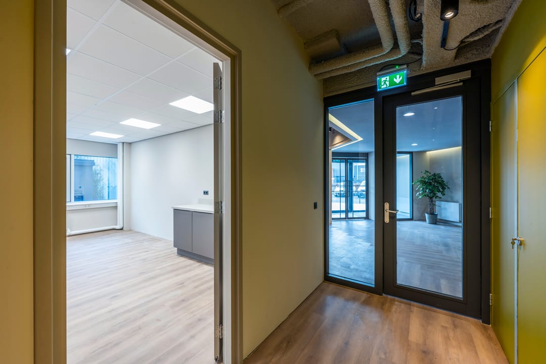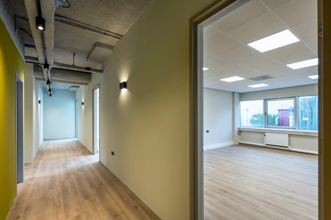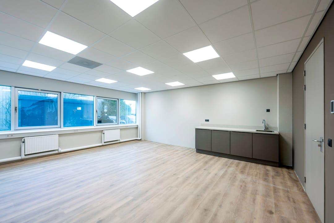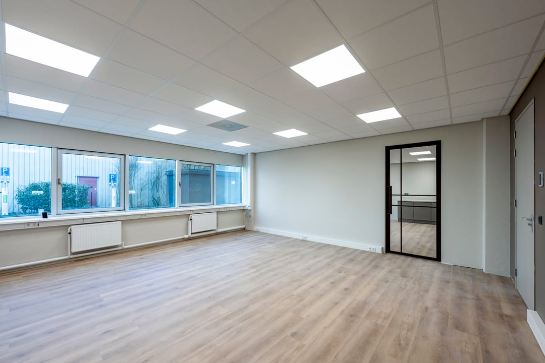 Op de begane grond is momenteel circa 267 m² v.v.o. kantoorruimte beschikbaar, verdeeld over meerdere units vanaf circa 57 m². Deze opzet maakt het object geschikt voor zowel kleinere ondernemers als groeiende bedrijven. Naast de zelfstandige kantoorruimtes kunnen gebruikers gebruikmaken van een gezamenlijke entree en een gedeelde vergaderruimte, wat bijdraagt aan een professionele en flexibele werkomgeving.