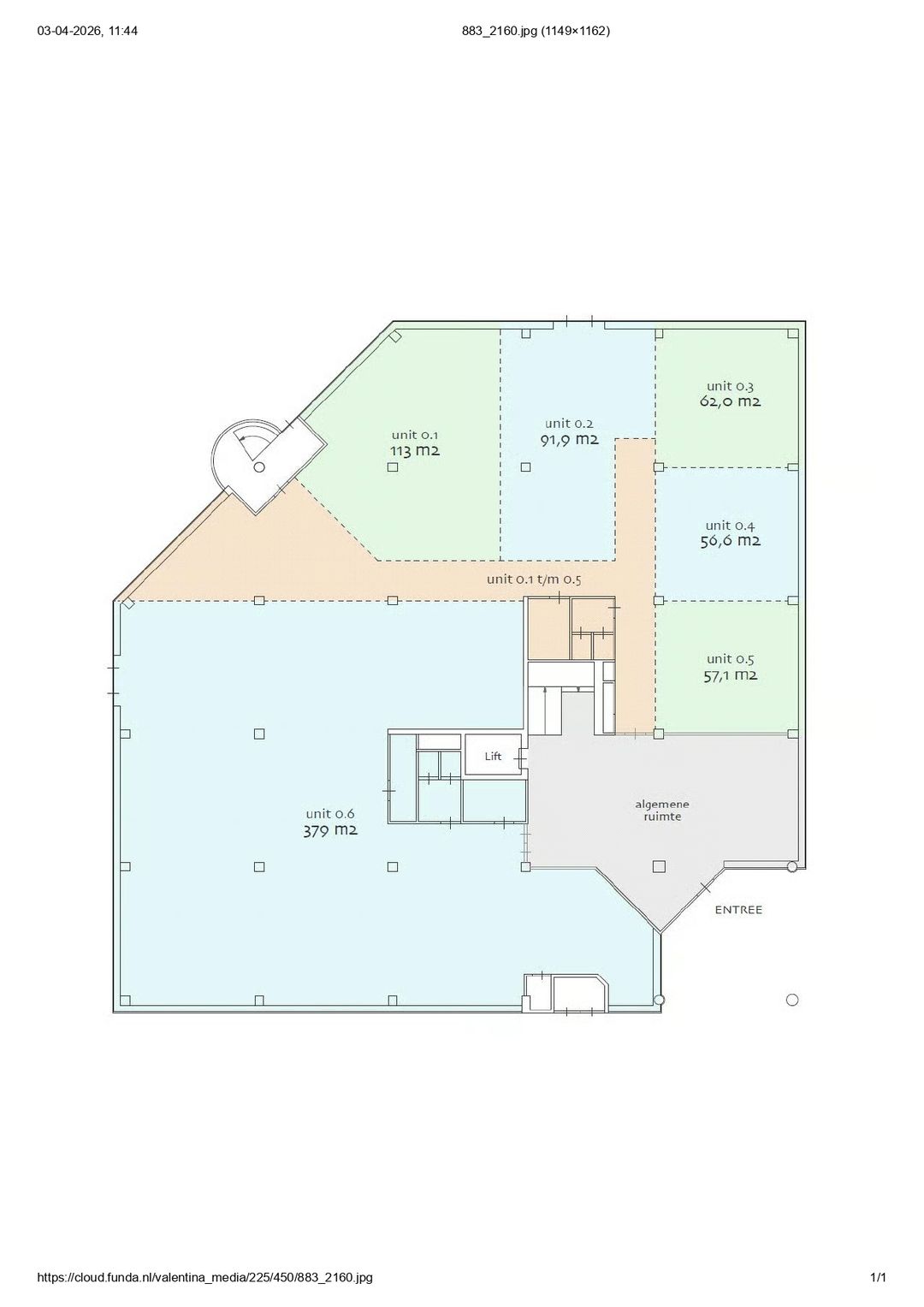 • Unit 0.5: ca. 57,1 m² v.v.o. – € 1.284,75,- per maand excl. BTW en servicekosten