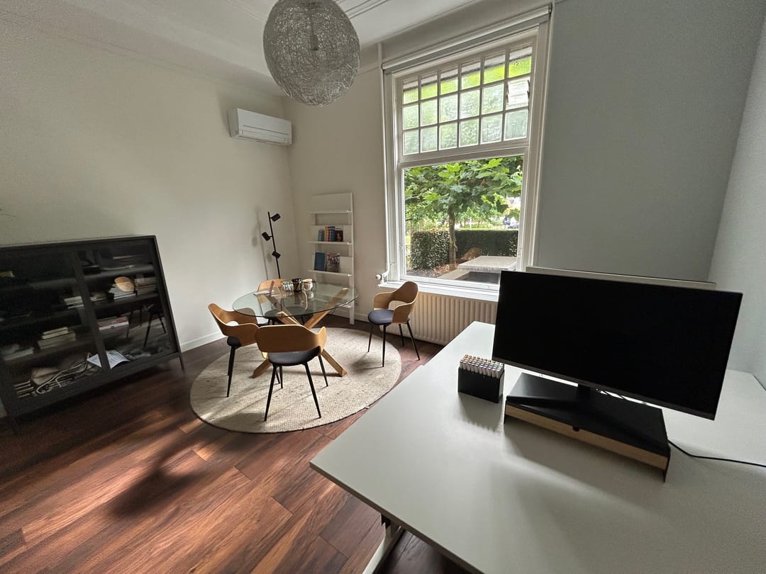 De meer dan royale kantoorsuites op de begane grond en op de eerste verdieping zijn hoog en licht en hebben ornamenten plafonds. De kantoorkamers op de tweede verdieping zijn ruim en licht. De meeste kamers kijken uit op prachtige tuin of op de Gardenierslaan en De Grote Kerk.
