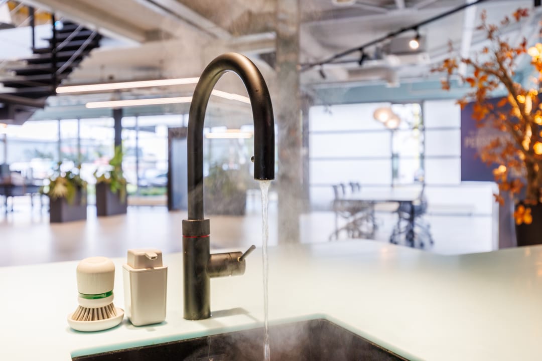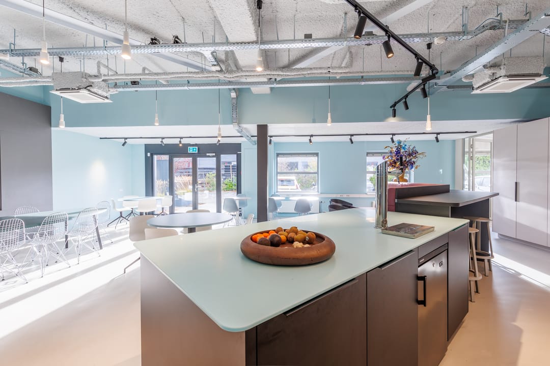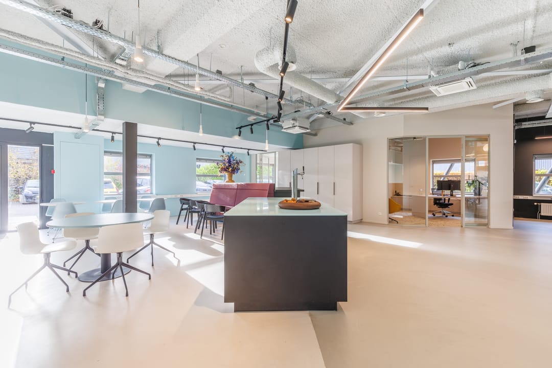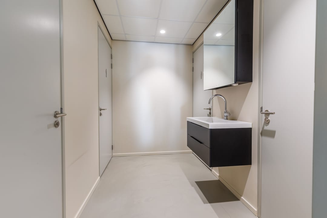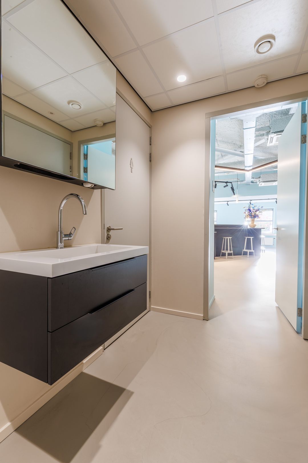 Het kantoor is hoogwaardig afgewerkt en uitgevoerd met voorzieningen om werken zo comfortabel en prettig mogelijk te maken. Door de grote raampartijen is er veel daglicht. Het klimaat is regelbaar door middel van airconditioning en luchtbehandeling. Het plafond is uitgevoerd als akoestisch plafond met moderne verlichting. De luxe open keuken is uitgevoerd met 2 blokken die vrij in de ruimte staan opgesteld. Deze zijn voorzien van dubbele vaatwasser, koel/vriezer, combi-oven, Quooker en zelfs een biertap. Het kantoor beschikt over energielabel A. Er is op maatgemaakte kastruimte, een inpandige berging en een moderne dubbel uitgevoerde toiletgroep (4 toiletten).
