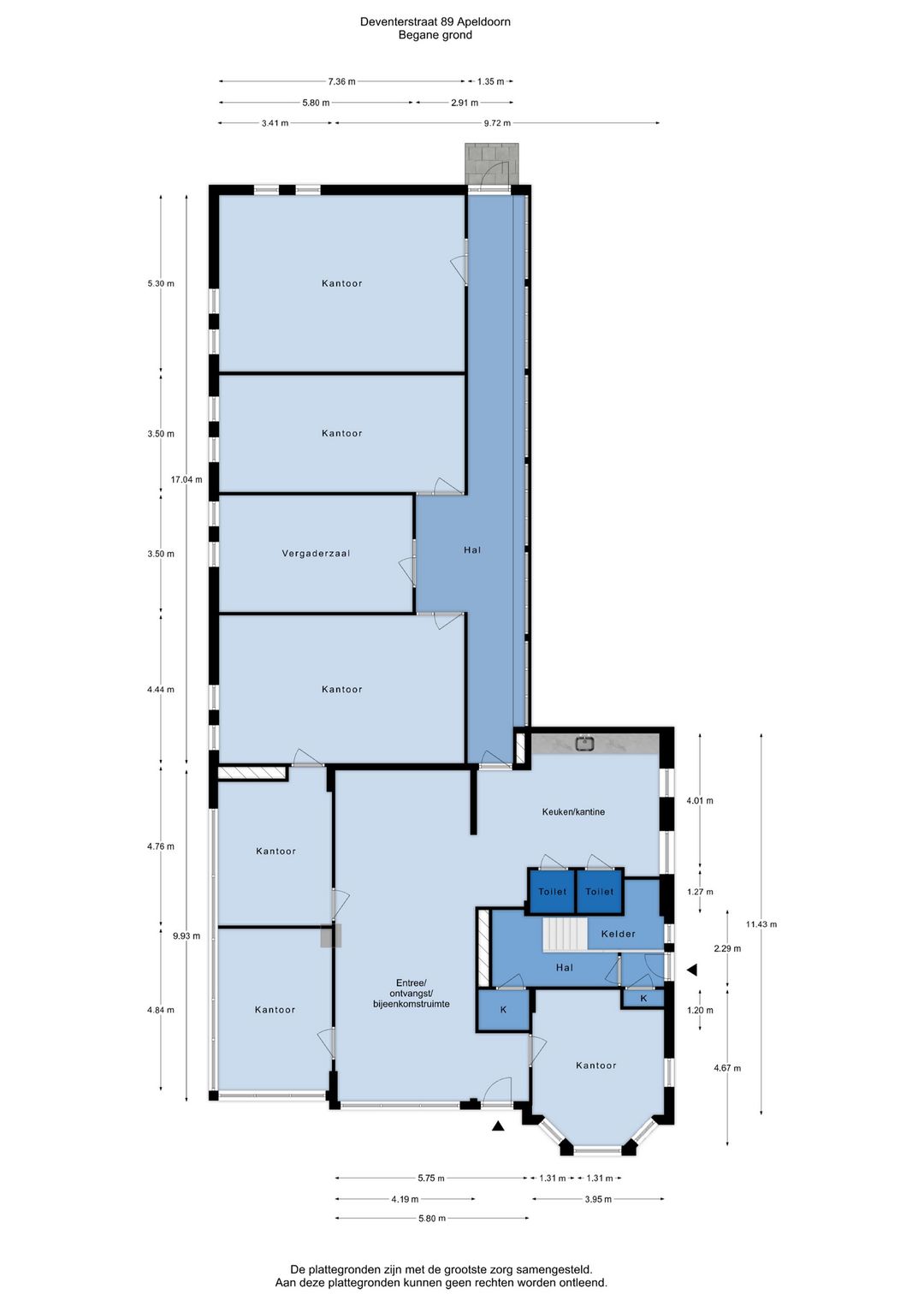 Aan deze objectinformatie kunnen geen rechten worden ontleend en deze informatie kan niet als aanbieding of offerte worden beschouwd maar geldt als uitnodiging om in onderhandeling te treden. Alle informatie is geheel vrijblijvend en uitsluitend voor geadresseerde bestemd. Alle gegevens zijn met zorg samengesteld en uit ons inziens betrouwbare bron afkomstig. Ten aanzien van de juistheid ervan kunnen wij echter geen aansprakelijkheid aanvaarden. Door ons wordt geen aansprakelijkheid aanvaard behoudens voor zover de door ons verplicht afgesloten beroepsaansprakelijkheidsverzekering in voorkomend geval aanspraak op een uitkering geeft.