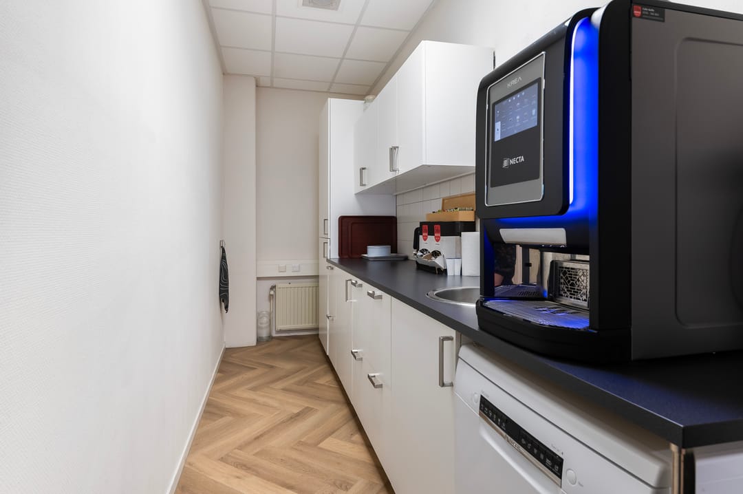 Huur inclusief vergaderruimte, terras, Starbucks, onbemande supermarkt, pantry met koffiemachine, internet, dakterras, business lounge, algemene gedeelde faciliteiten, 24/7 toegang, coffee corner.