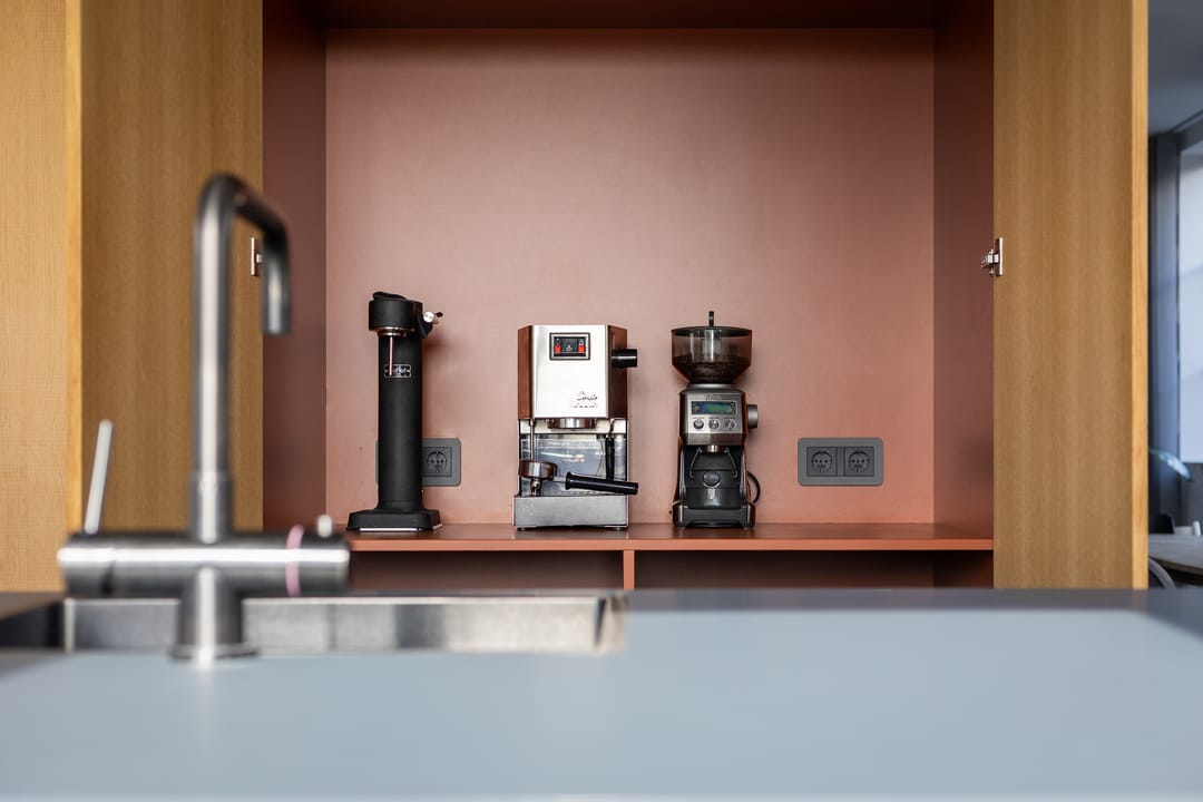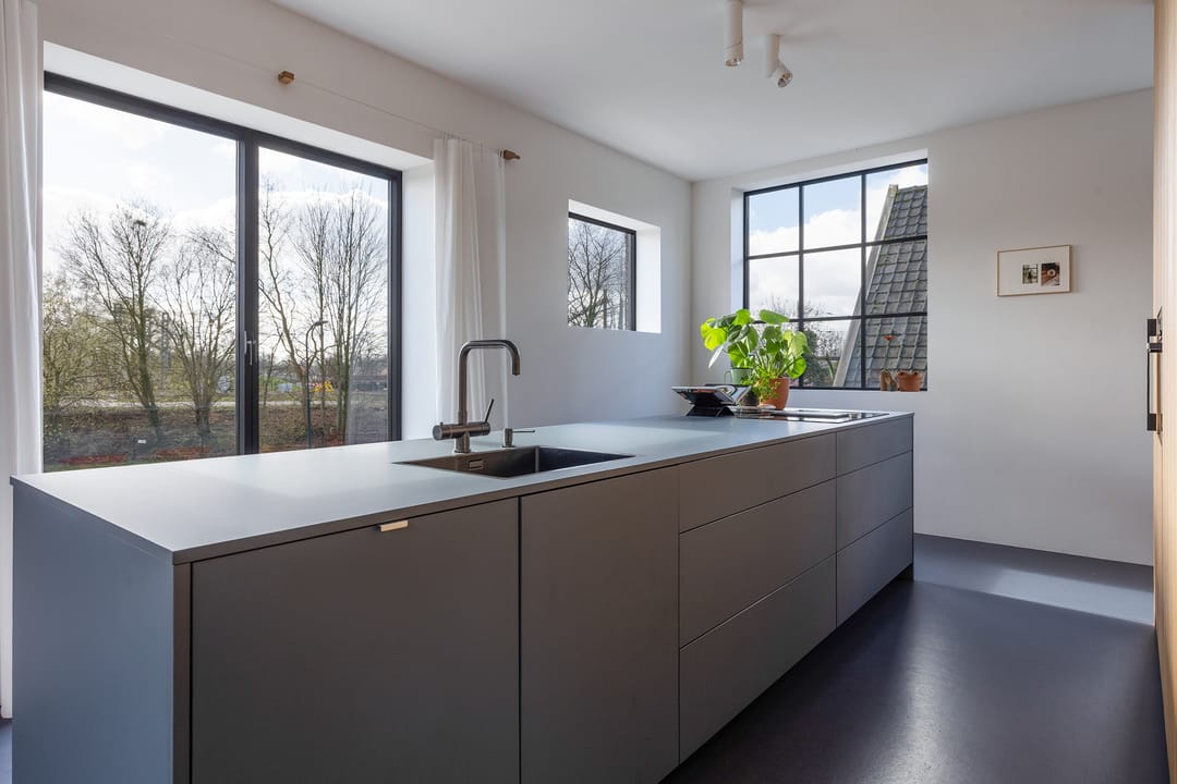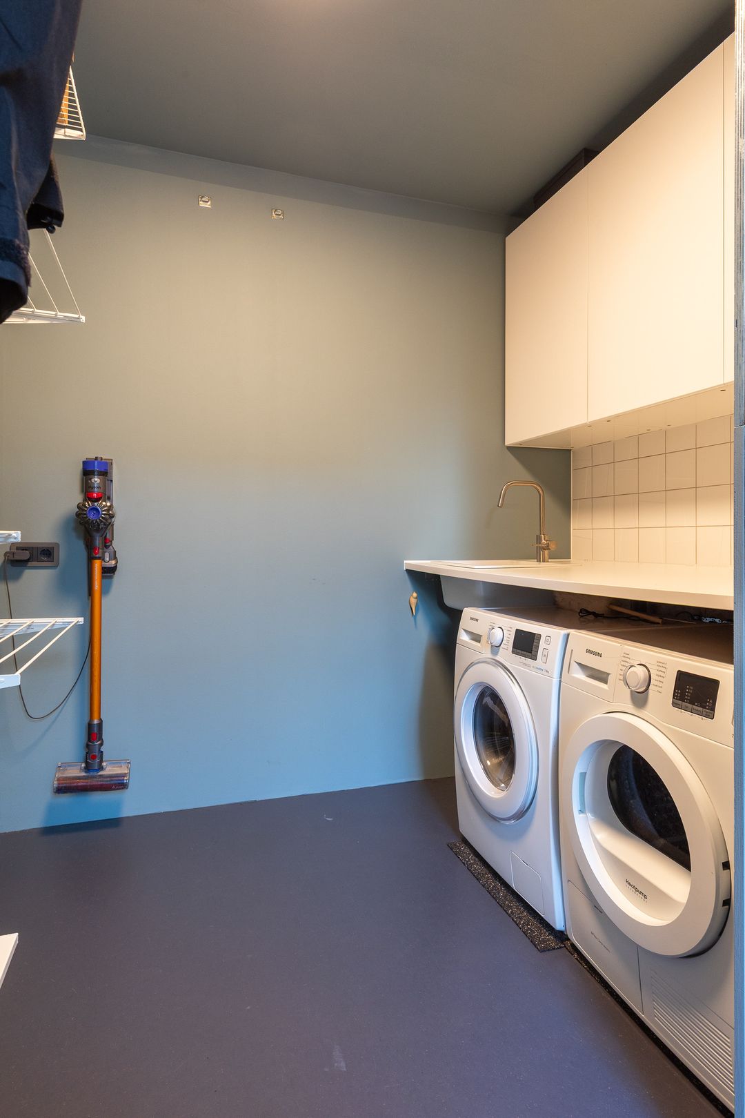1e Verdieping: prachtige, lichte woonkeuken (2018) met stijlvolle maatwerkkasten, een kookeiland met bargedeelte, luxe A-klasse inbouwapparatuur en een schitterend vrij uitzicht. Daarnaast beschikt deze verdieping over een ruime woonkamer, een modern toilet met fonteintje en een praktische wasruimte met veel kastruimte en aansluitingen voor wasmachine en droger. De gehele verdieping is afgewerkt met een fraaie marmoleumvloer en voorzien van comfortabele vloerverwarming.