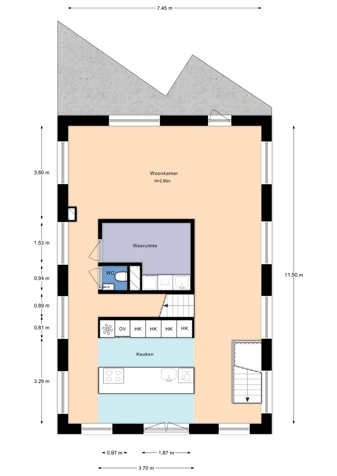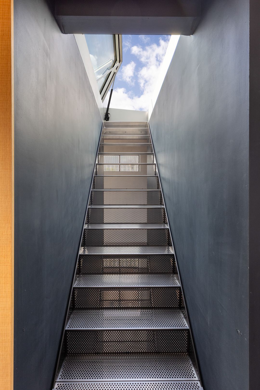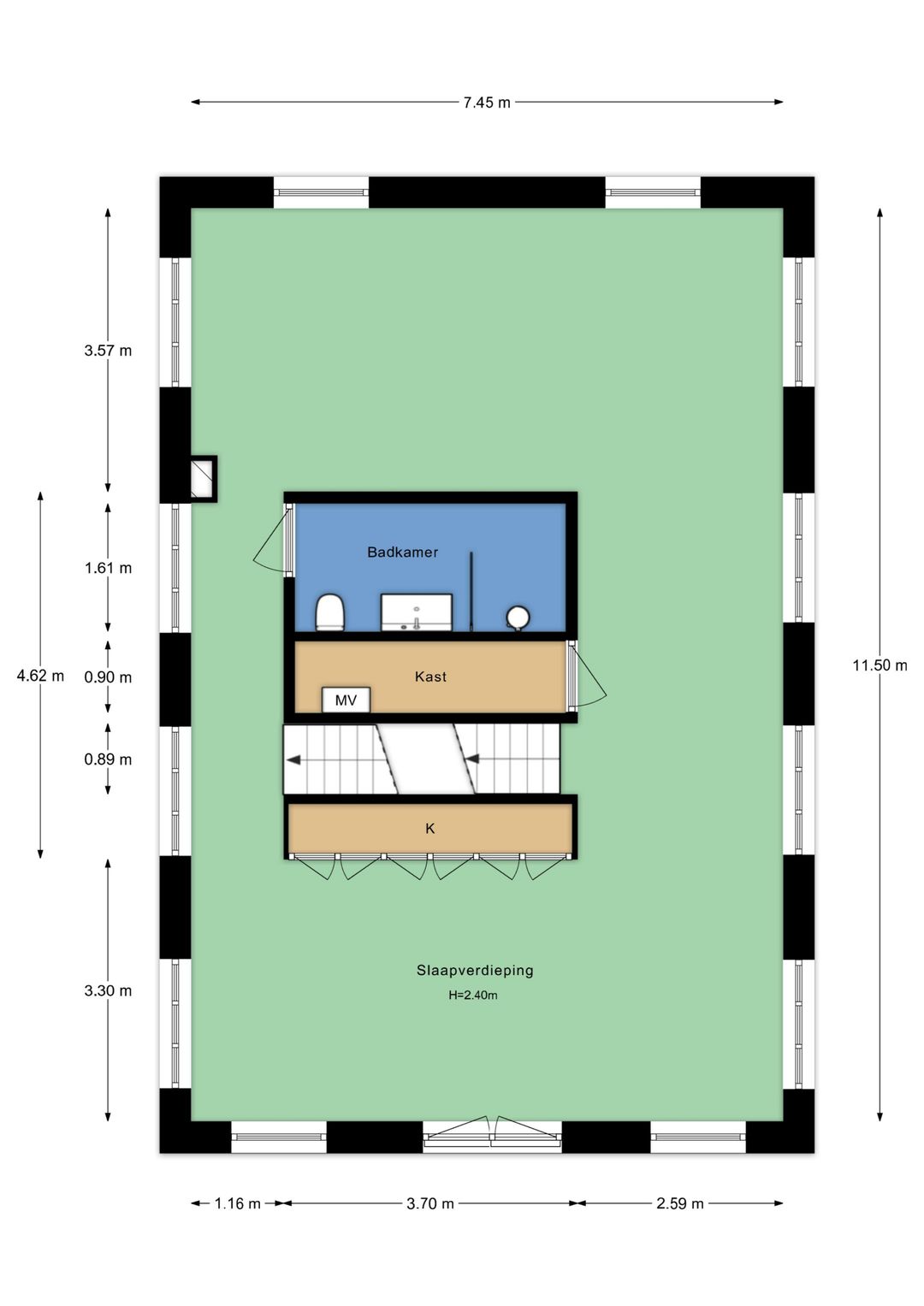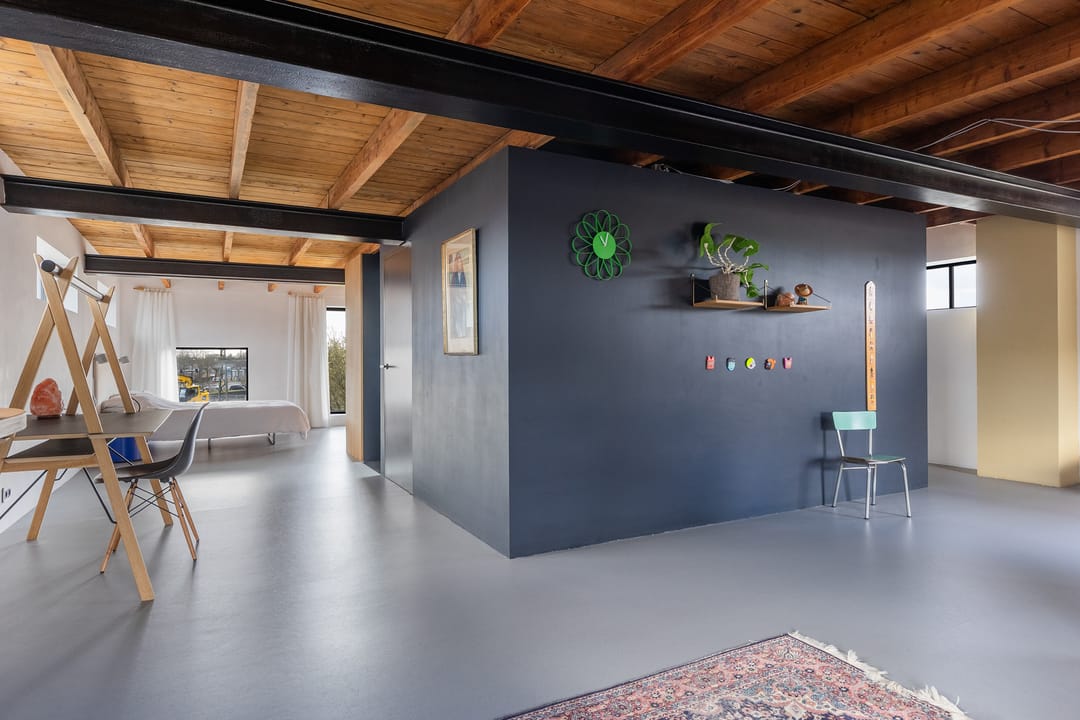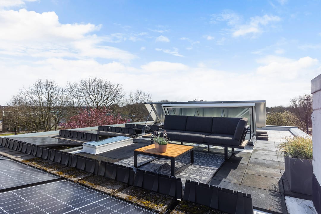 2e Verdieping: via de fraaie maatwerk stalen trap bereikt u de loftachtige slaapverdieping, waar desgewenst meerdere kamers kunnen worden gerealiseerd (zie alternatieve plattegronden). Deze verdieping beschikt over een luxe badkamer (2021), uitgerust met een wastafel, toilet, ruime inloopdouche en daklicht, evenals een ruime inpandige berging. Ook hier is gekozen voor een fraaie marmoleumvloer met comfortabele vloerverwarming. Via een vaste trap bereikt u het platte dak, toegankelijk middels een elektrisch bedienbaar dakluik.