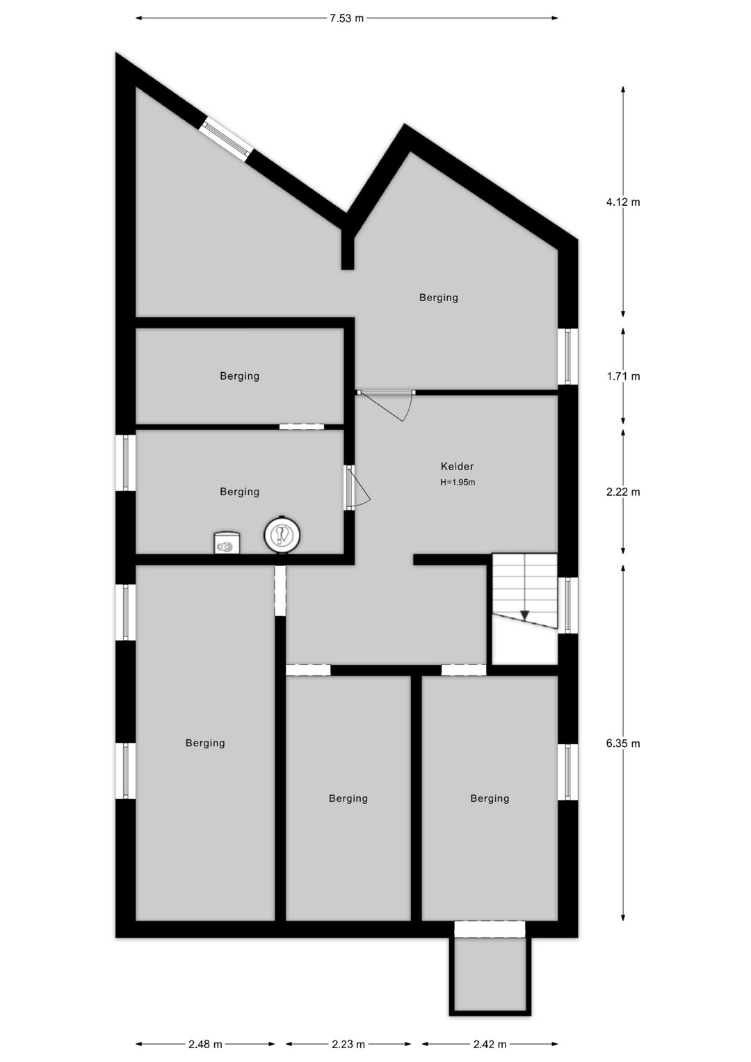Souterrain: ruim 100 m² aan praktische opslagruimte, verdeeld over meerdere ruimtes met een stahoogte van circa 1,95 meter. Tevens bevindt zich hier de technische ruimte met onder andere het hybride cv- en tapwatersysteem.