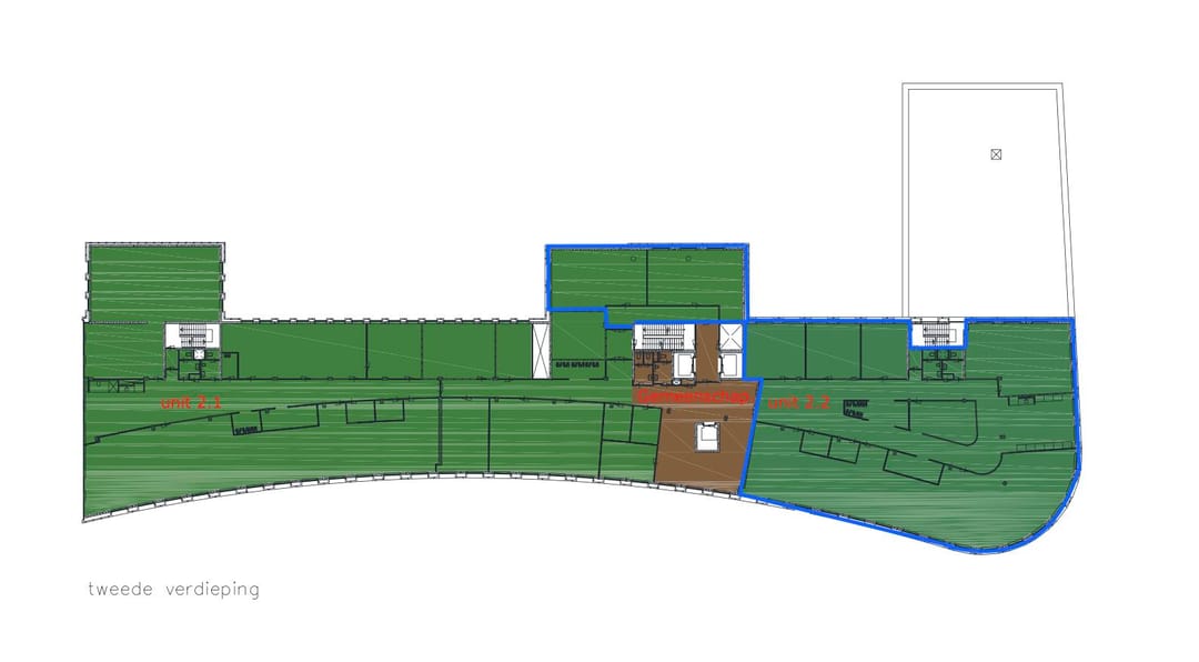 1ste verdieping: Unit van 40 m2 beschikbaar per 1 mei 2026