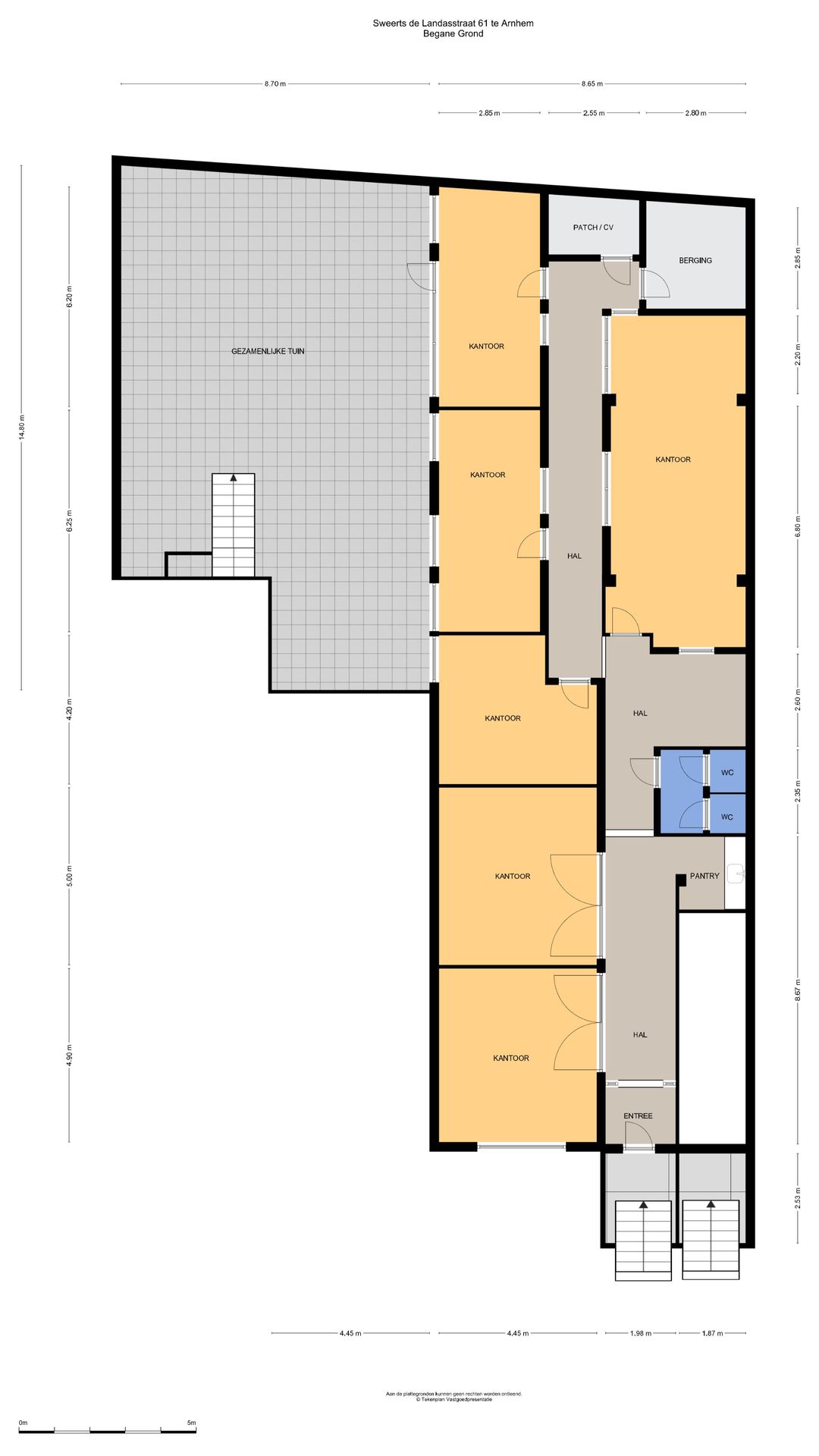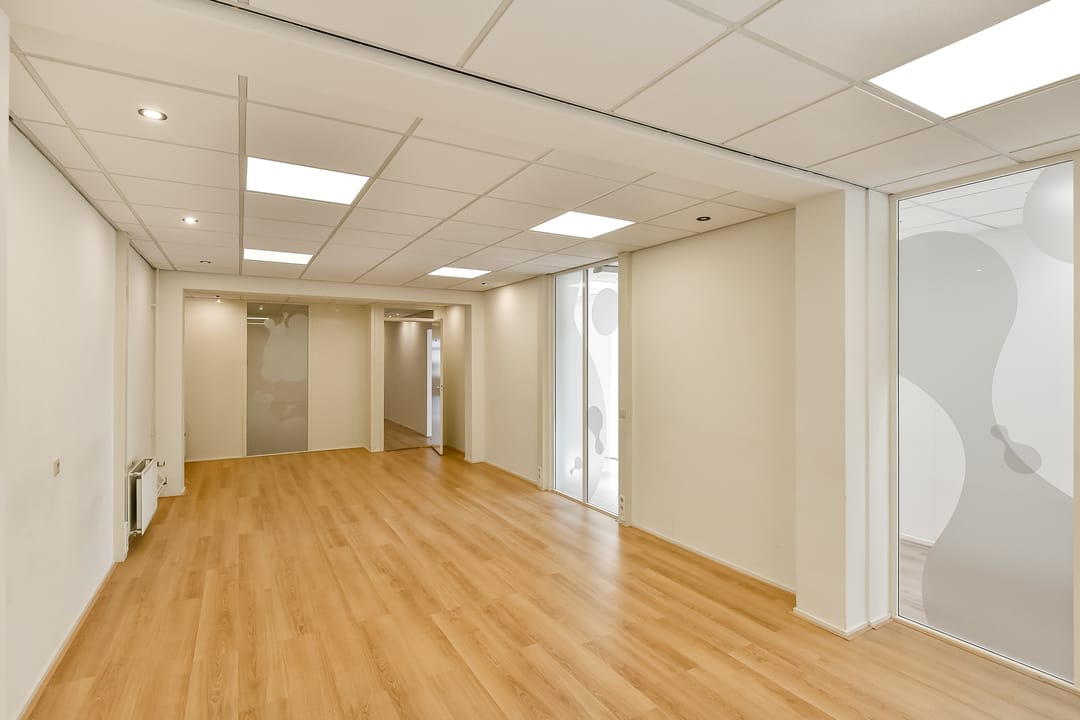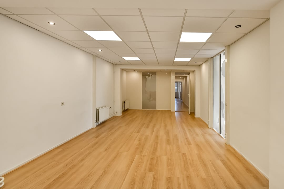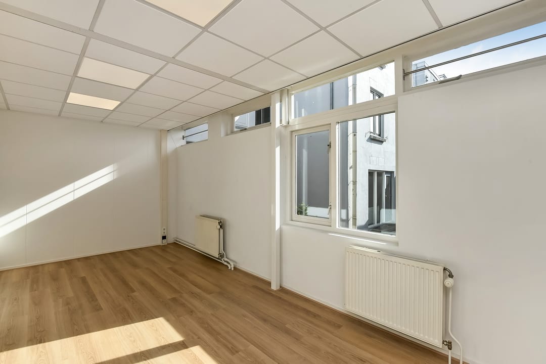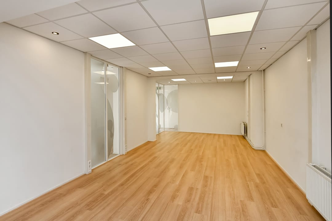 - Voorzijde voorzien van hoge stucplafonds, achterzijde voorzien van systeemplafonds;