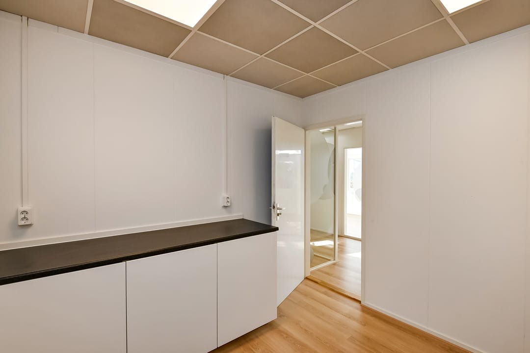 - Te openen ramen, systeemplafond, toilet, pantry en verwarming