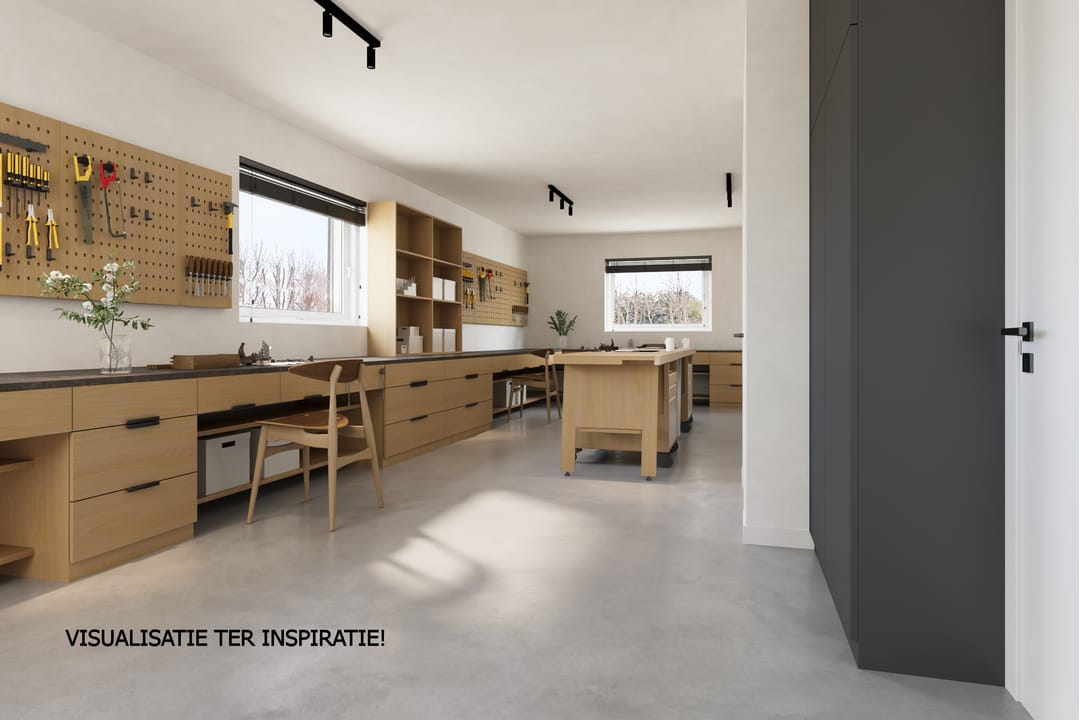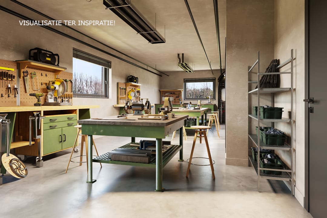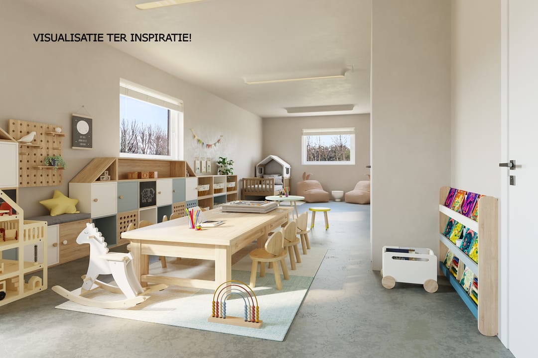 > Er zijn meerdere visualisaties gemaakt om te laten zien wat er met de horecaruimte mogelijk is: een werkplaats, een yoga-/pilatesstudio, een kinderopvang en een metaalbewerkingsbedrijf. Ter inspiratie, we denken graag met je mee! <