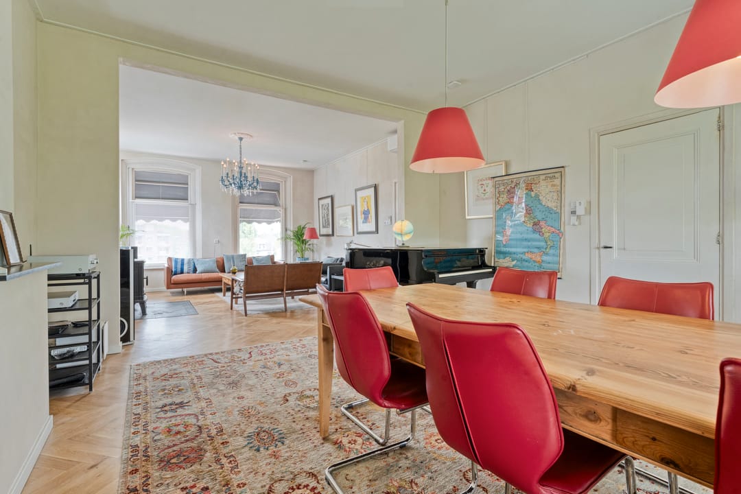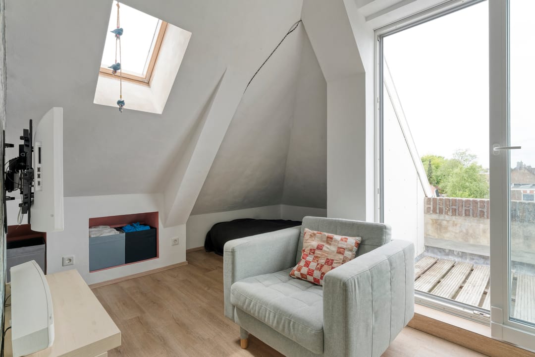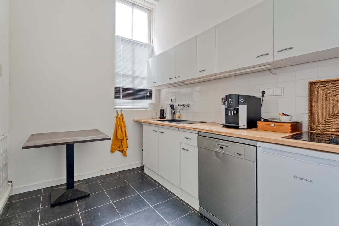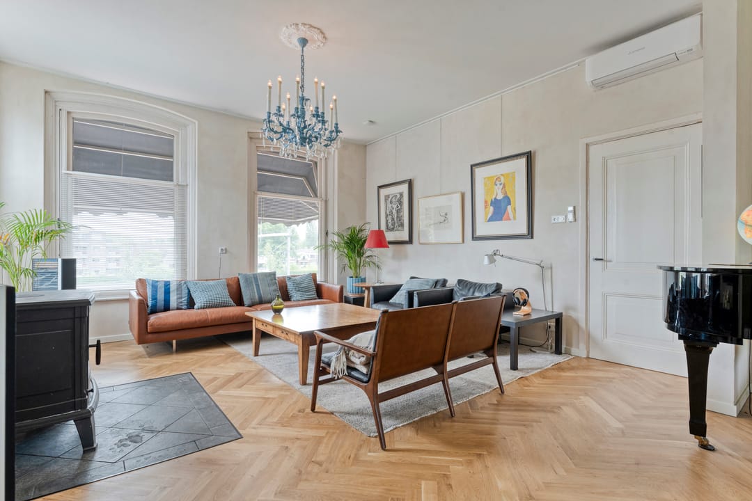 De bovenwoning ademt sfeer en kwaliteit. De overloop leidt naar de sfeervolle woonkamer en eetkamer zijn afgewerkt met een warme massief eiken vloer en een gezellige en warme houtkachel. De separate keuken is luxe uitgerust met een 5-zone inductiekookplaat, afzuigkap, oven, vaatwasser, ruimte voor een professionele magnetron en biedt toegang tot een royaal dakterras op het westen, waar je volop geniet van de middag- en avondzon. Verder is er een fijne slaapkamer met een eigen badkamer ensuite, voorzien van een douche en wastafel. Aan het einde van de overloop is tevens een geheel vernieuwd gastentoilet met bidet.