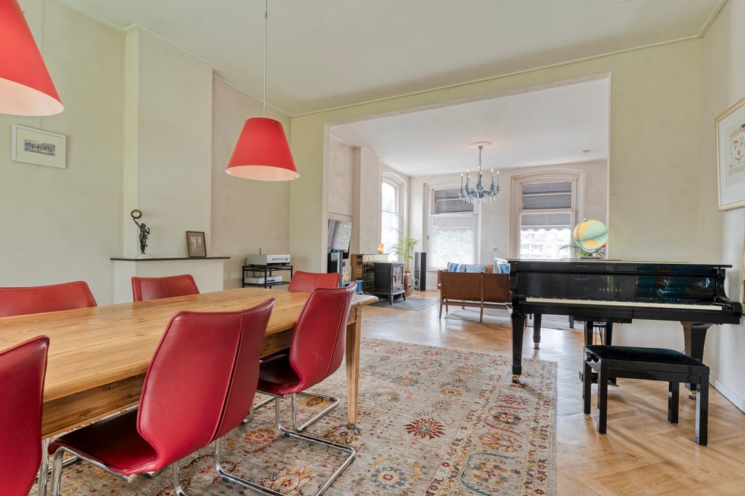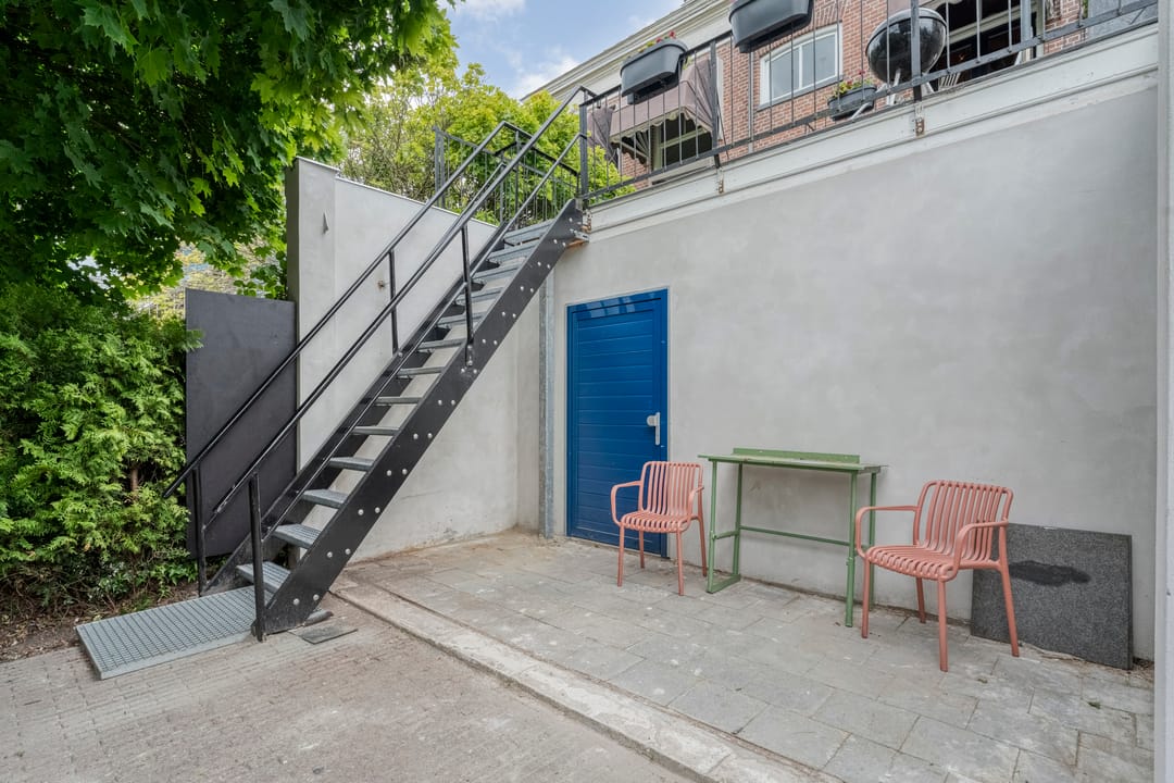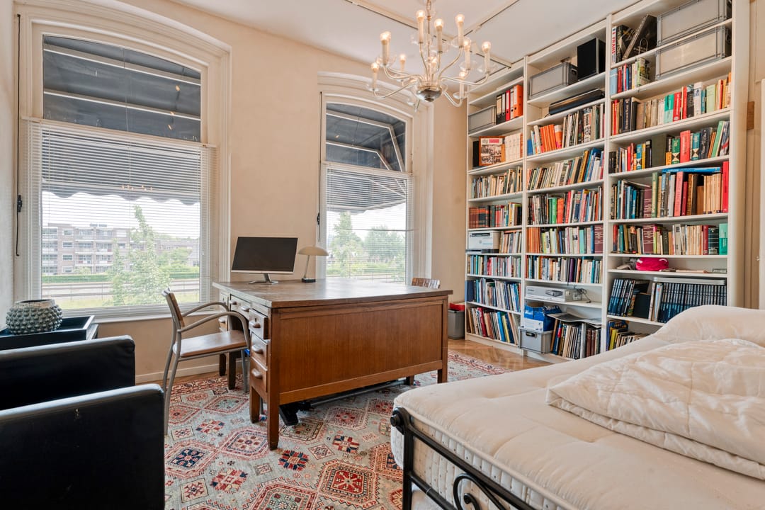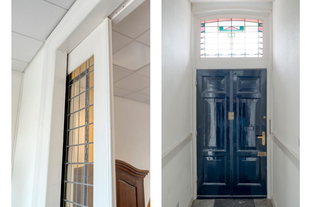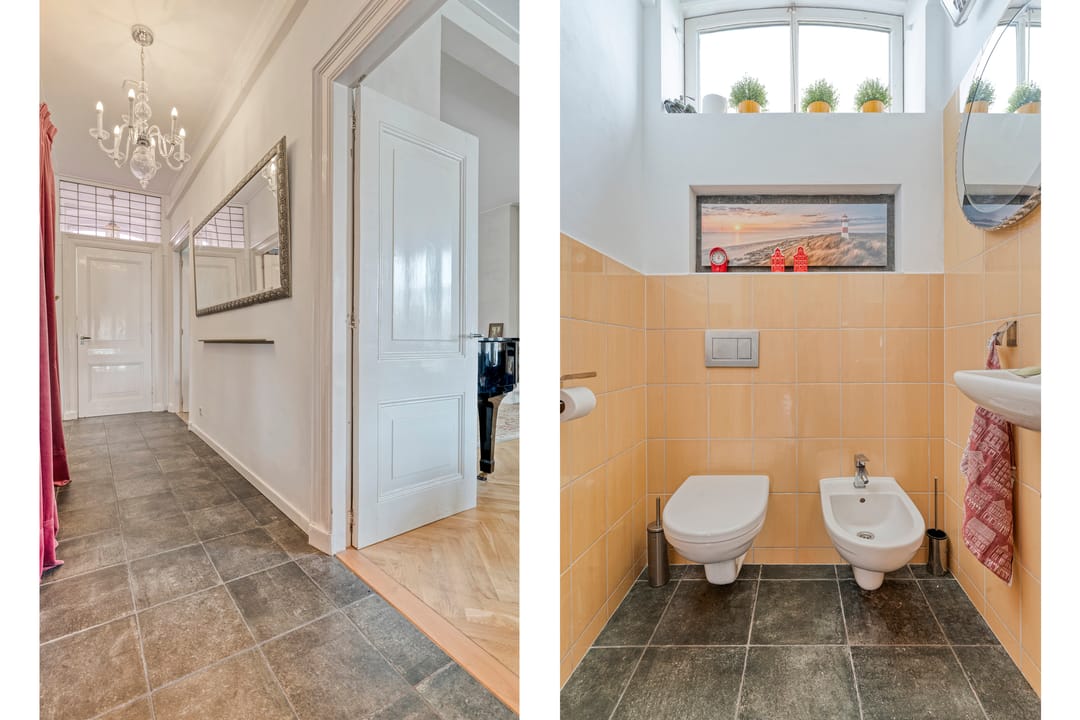 Via een imposante entree met een lange gang, originele glas-in-loodramen (met bergkast) betreed je de kantoorruimte. De stijlvolle werkomgeving omvat twee ruime, hoge kamers met fraaie ensuite-deuren en airconditioning, wat zorgt voor een representatieve én comfortabele werkplek. Aan de achterzijde geven dubbele tuindeuren toegang tot het terras. Aangrenzend bevinden zich nog twee afzonderlijke werkkamers. De pantry is voorzien van een 2-zone inductiekookplaat, koelkast en vaatwasser. Een modern toilet met fontein maakt de begane grond compleet. Deze multifunctionele ruimte is uitstekend geschikt voor zakelijke doeleinden zoals praktijk aan huis, atelier, kantoor of verhuur aan derden. Eventueel bestaat de mogelijkheid om weer een doorbraak te maken en het geheel aan elkaar te koppelen tot één imposant en statig kantoor!