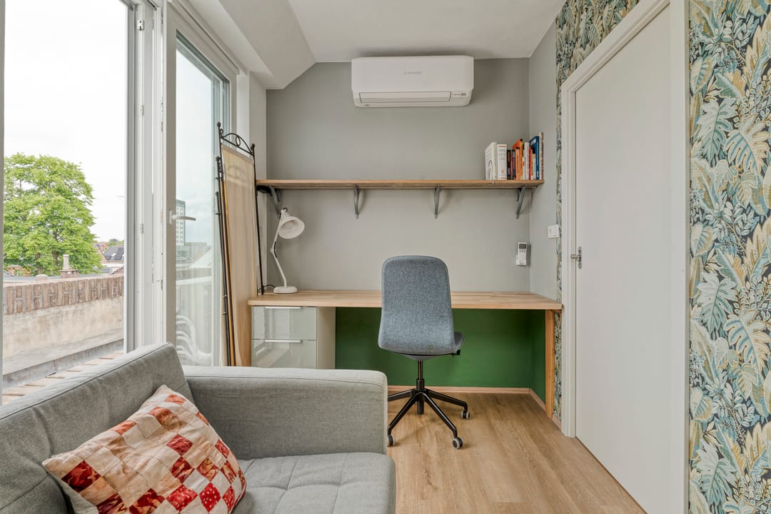 - Airconditioning, inbouwarmaturen, te openen ramen, systeemplafond, toilet, pantry, verwarming en kamerindeling