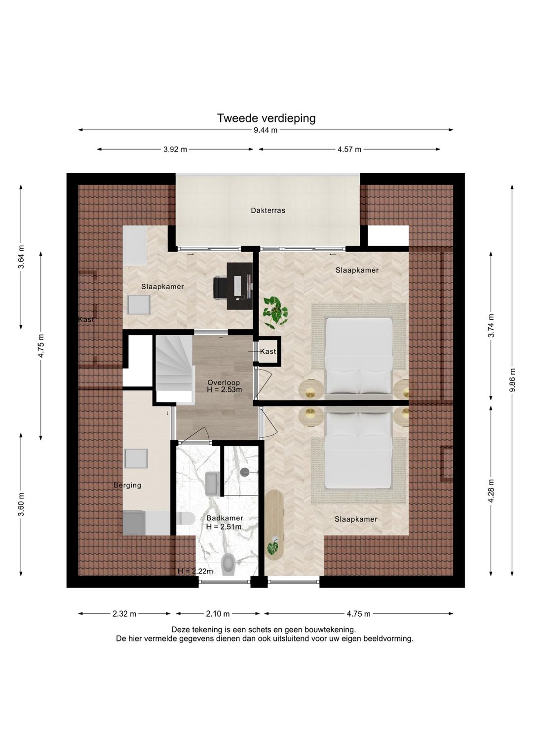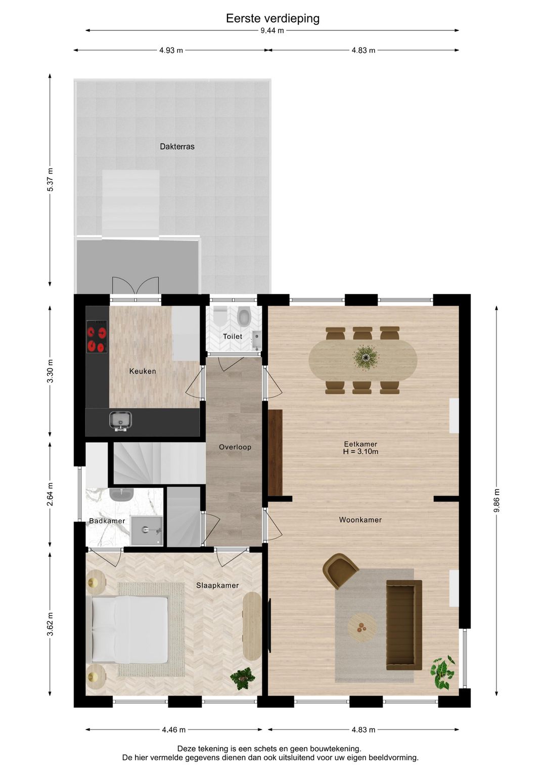 Indeling nummer 4 – Bovenwoning (eerste en tweede verdieping):