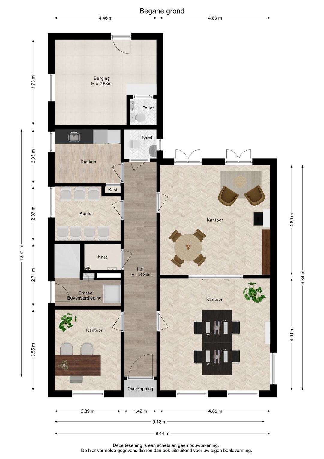 Indeling nummer 5 – Kantoor (begane grond):