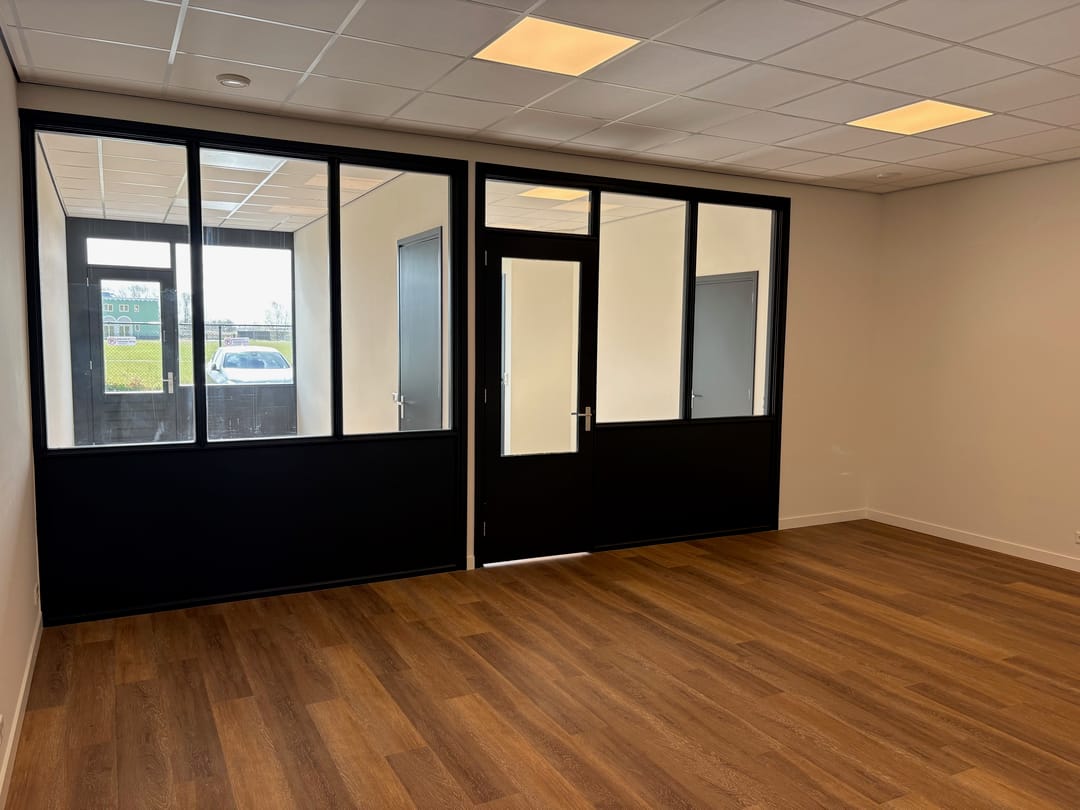 De voormalige bedrijfshal is voorzien van een elektrische overheaddeur en een toiletruimte, en ingericht met 3 ruime praktijk/kantoorruimten met een open gevelkozijn met glas en een aparte toegangsdeur.