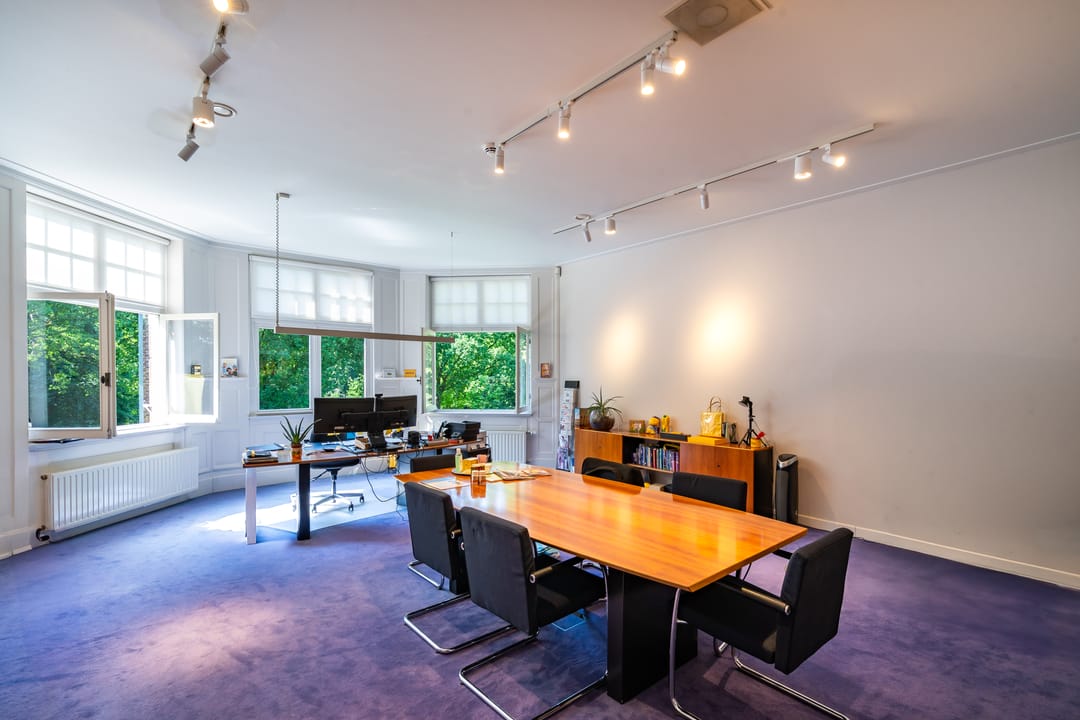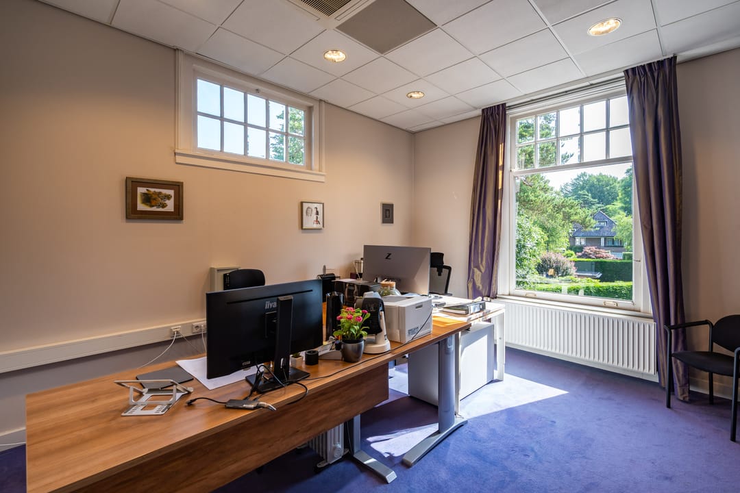 Monumentale kantoorvilla op zichtlocatie aan de groene en statige Gerrit van der Veenlaan 16 in het geliefde Wilhelminapark te Baarn. Deze gemeentelijk monumentale villa uit circa 1903, met een totaal verhuurbaar vloeroppervlak van 866,03 m² VVO, is gelegen op een ruim perceel in een representatieve en bosrijke omgeving.