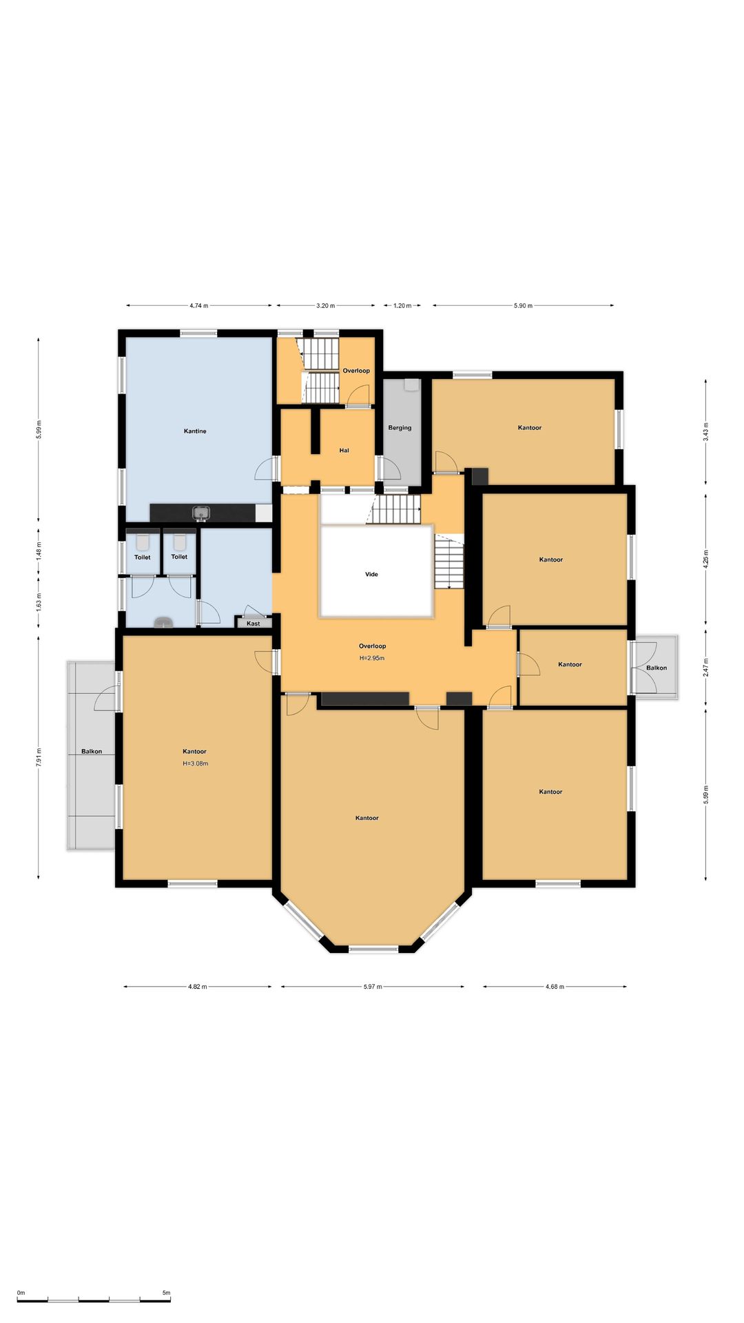 De verschillende verdiepingen zijn voorzien van ruime kantoorvertrekken, hal-/entreezones, pantry's, sanitaire voorzieningen en authentieke elementen.