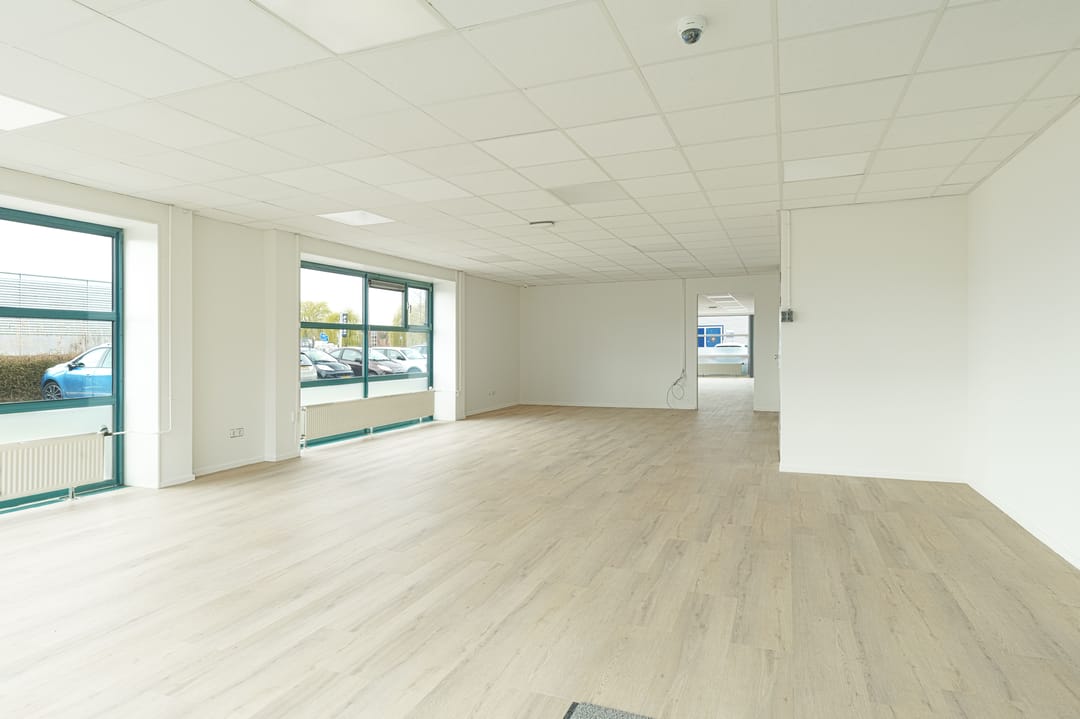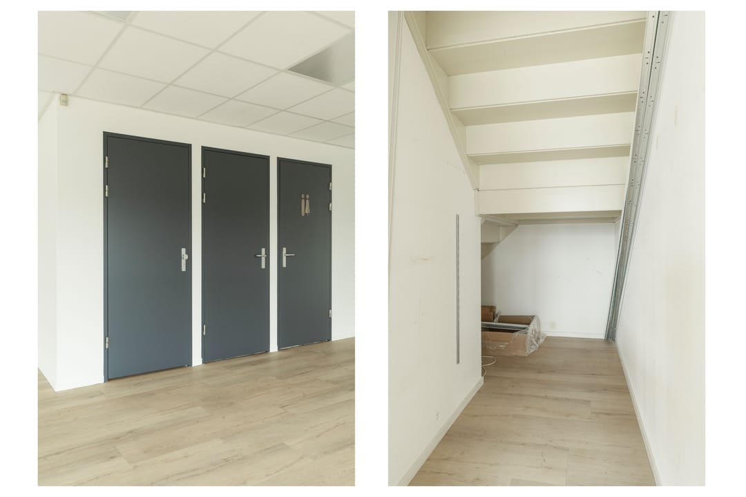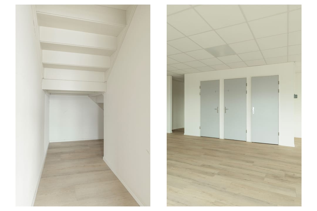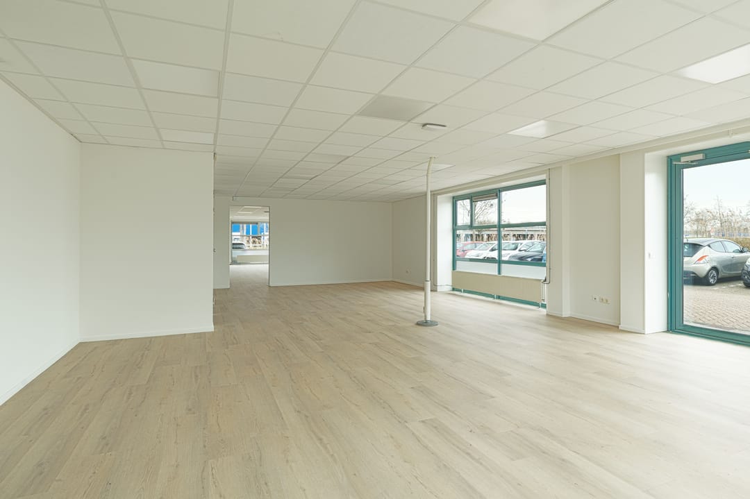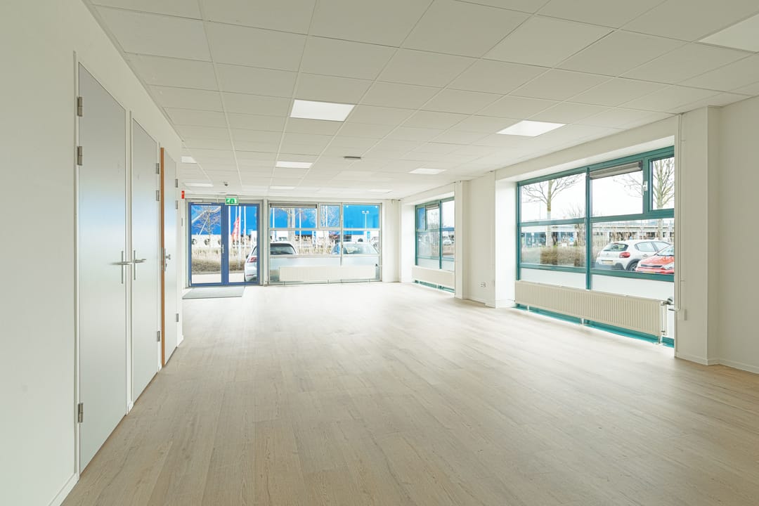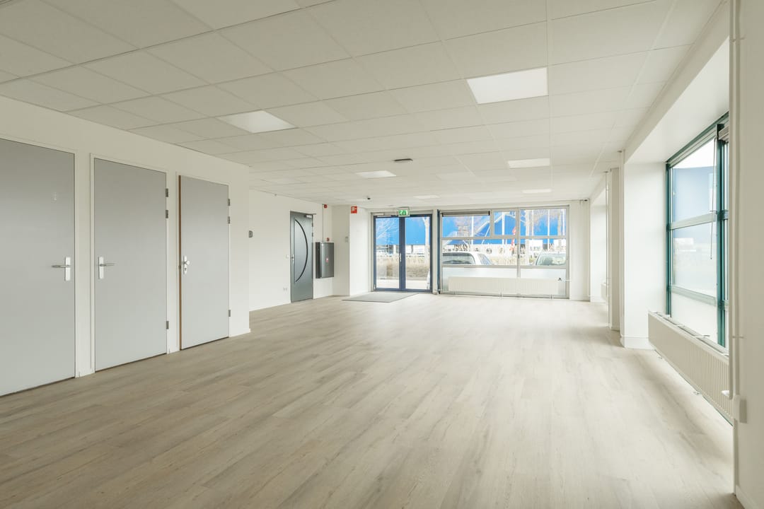 De kantoorruimte ligt op de begane grond en omvat een totale oppervlakte van 210 m2, bestaande uit 2 kantoorruimten welke met elkaar verbonden zijn middels een doorgang. Desgewenst kan deze opgesplitst worden in twee ruimten van elk 105 m2. De kantoorruimte heeft een eigen entree en beschikt over veel raampartijen waardoor het een plezierige werkomgeving is. Er is uitstekende zichtbaarheid van de Rostock wat onder meer de aanrijroute naar Ikea is. De kantoorruimten zijn elk voorzien van een pantry en toiletgroep.