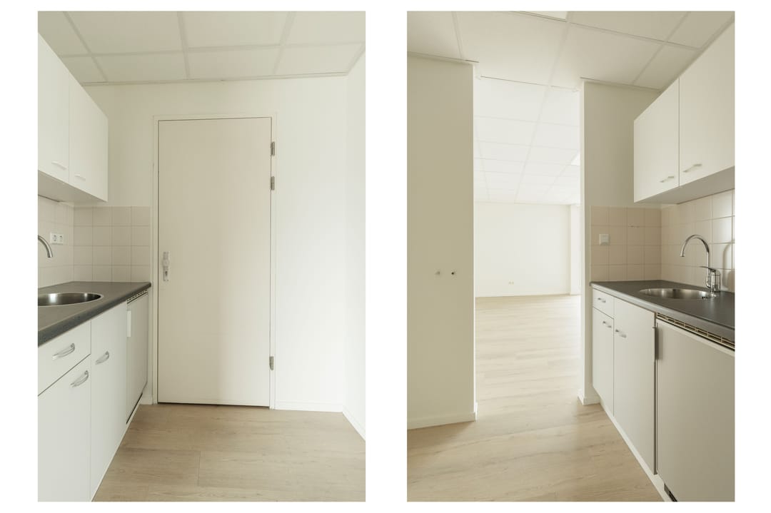 - Te openen ramen, kabelgoten, systeemplafond, toilet, pantry en verwarming