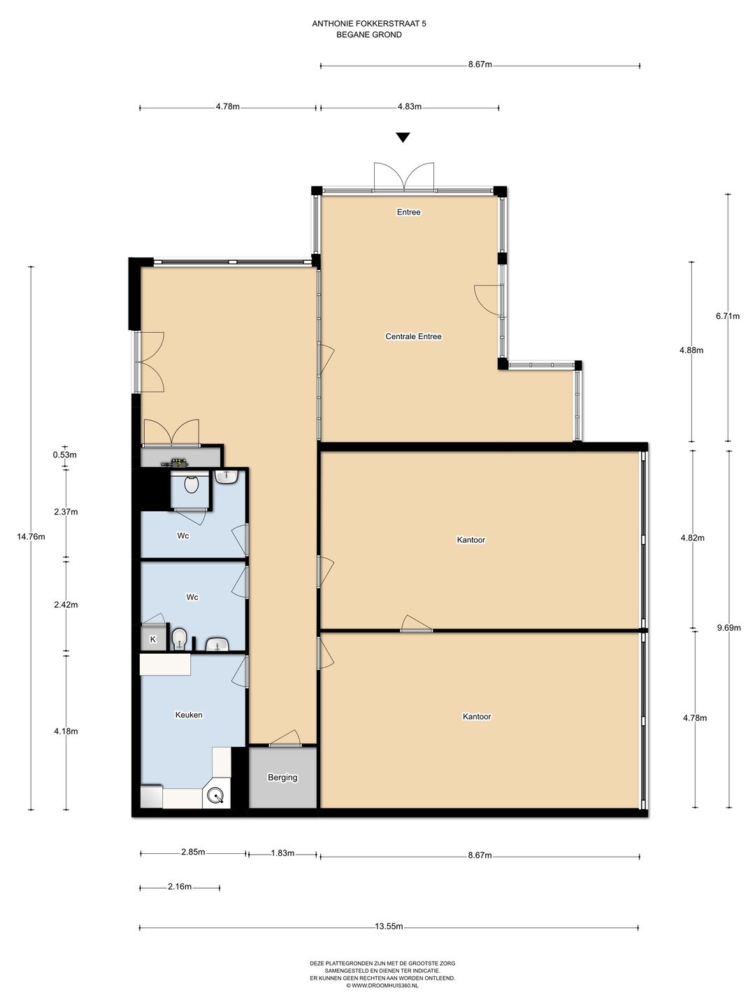 Begane grond circa 230 m² inclusief aandeel algemene ruimten. (VERHUURD)