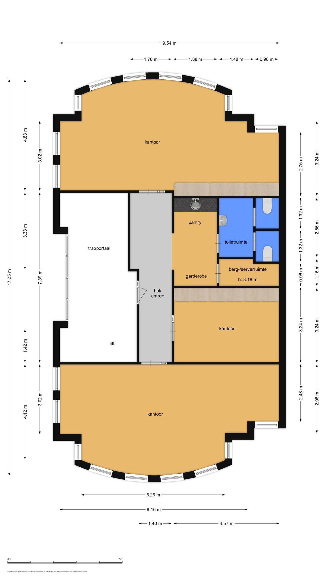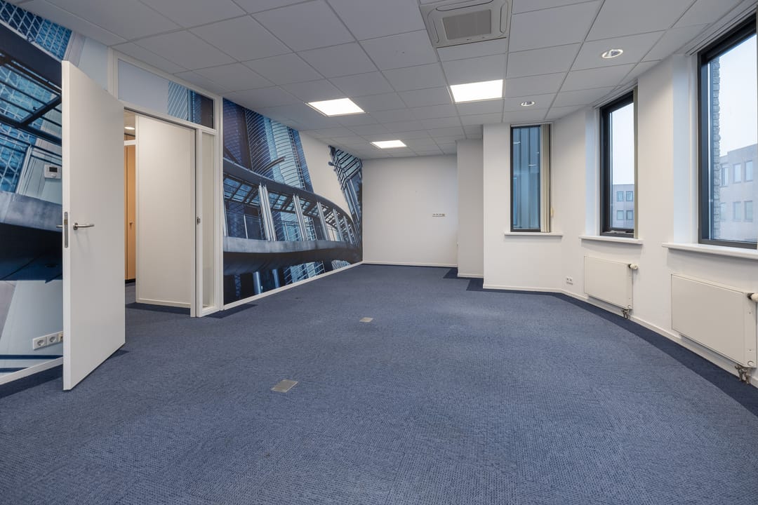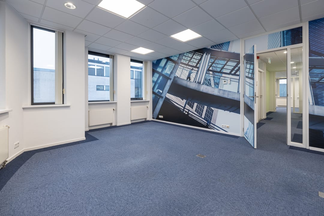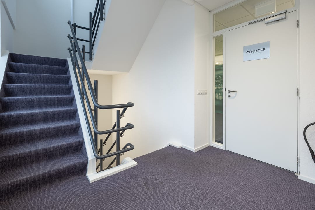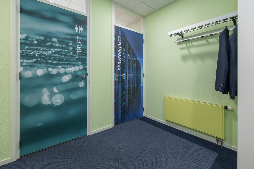 Via de toegangsdeur bij het trapportaal is de entree van het gehuurde te bereiken. In de entree loopt u direct tegen de pantry en garderobe aan, waar ook de toegang tot de toiletgroep te vinden is en tot de berg-en serverruimte. Vanuit de hal krijgt u ook nog toegang tot de drie kantoorruimtes.