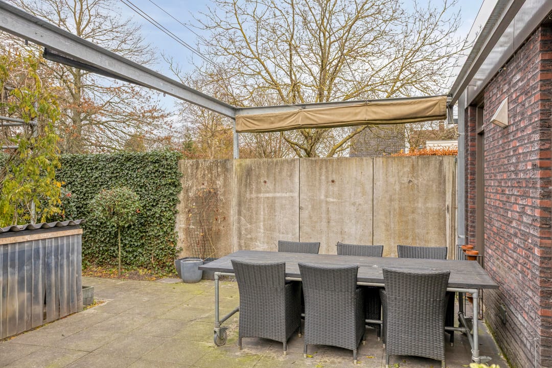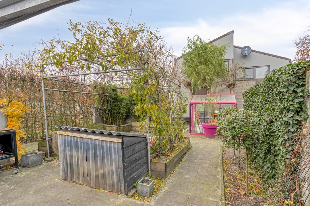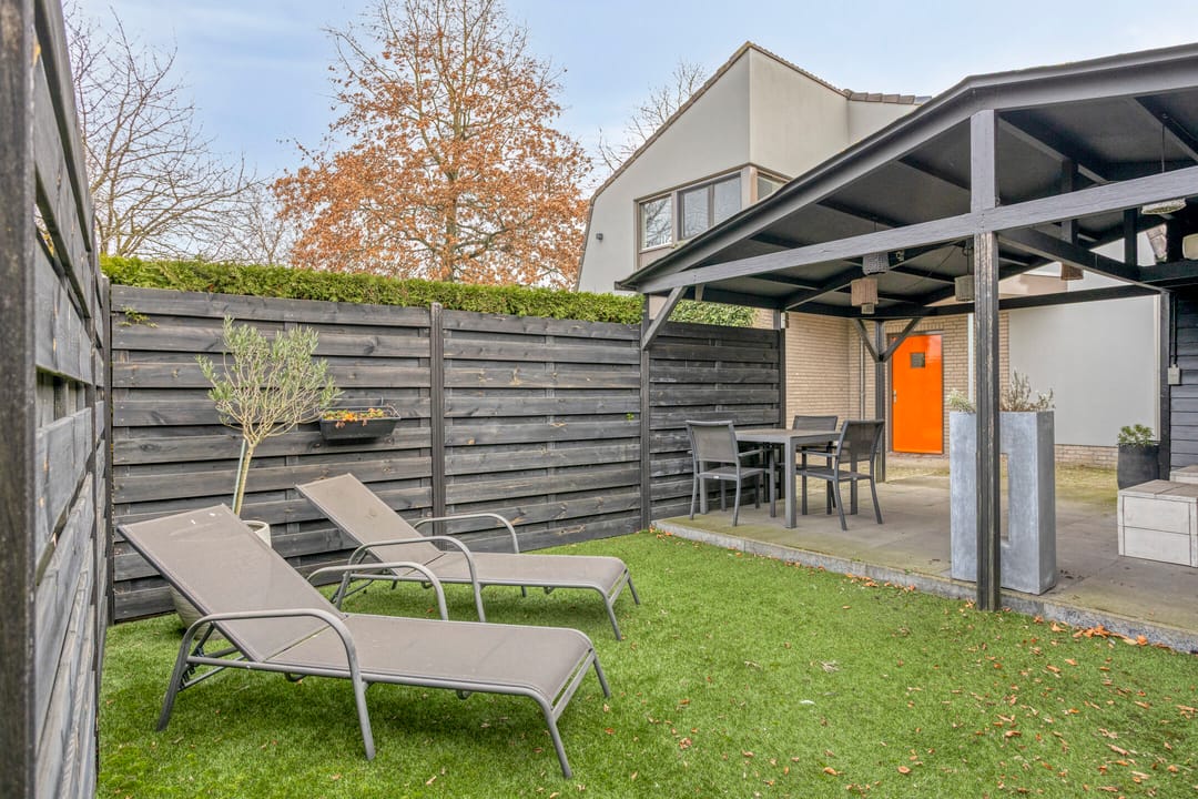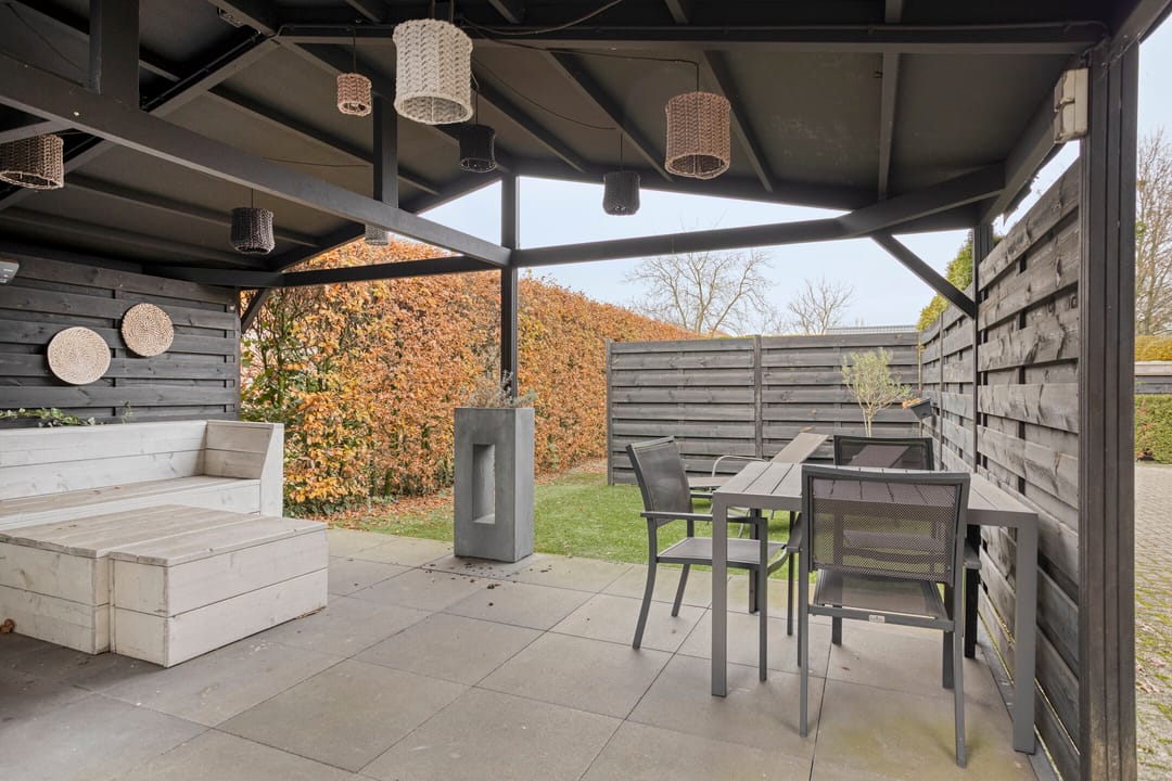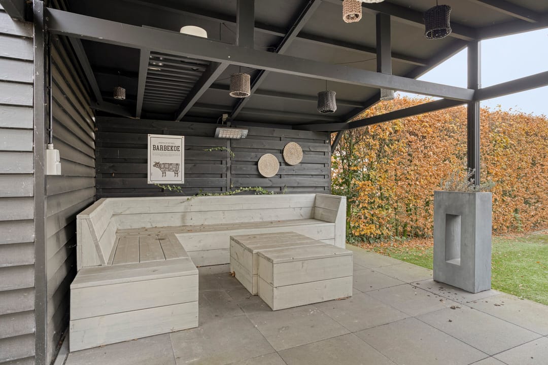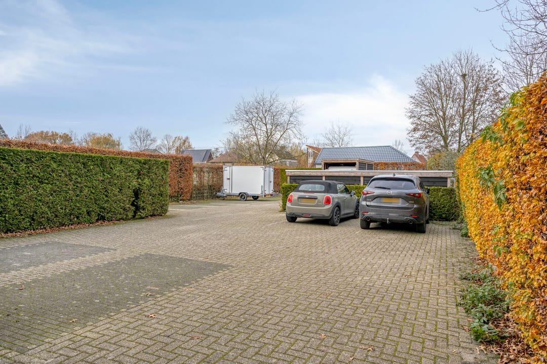 De omheinde achtertuin is sfeervol aangelegd. Tevens is er een gezellig overdekt terras aanwezig. Op het royale erf is plek voor maar liefst 12 parkeerplaatsen. Ideaal voor gasten, zakelijke bezoekers of groot materieel.