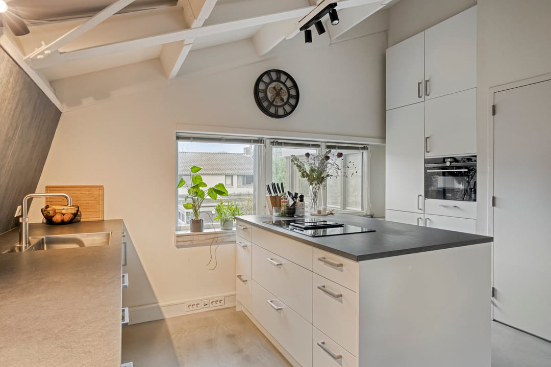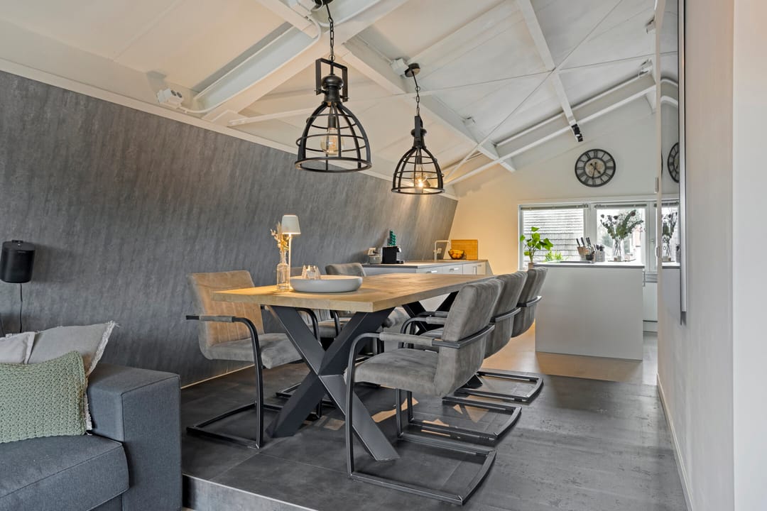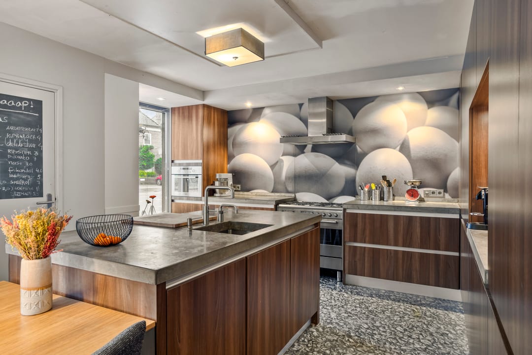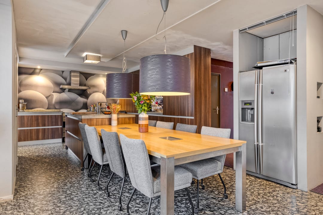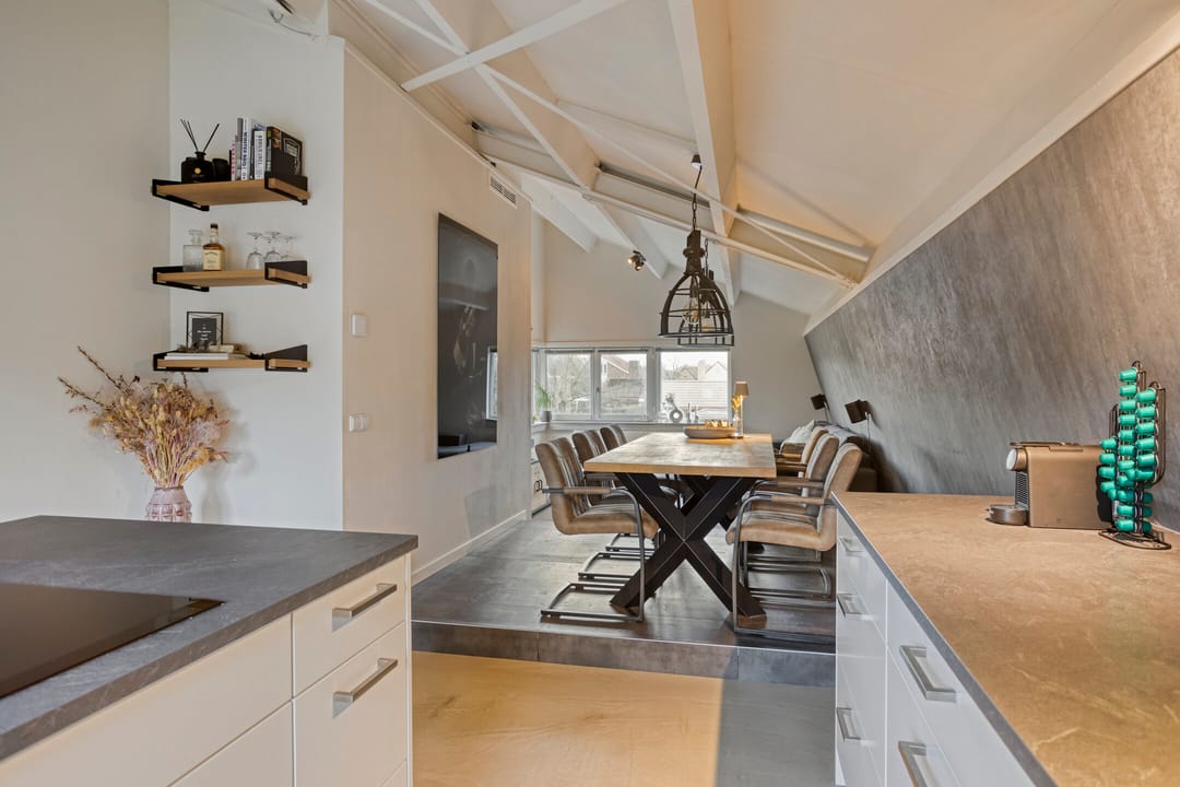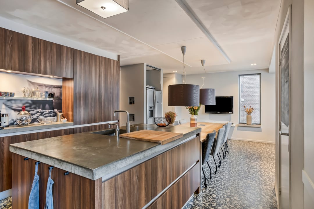 Via de entree met meterkast (inclusief glasvezel) stapt u direct binnen in de moderne woon- en leefkeuken. Deze is uitgerust met betonnen werkblad, werk-/spoeleiland, 5-pits gasfornuis, oven, afzuigkap, combi-oven/magnetron, Quooker, vaatwasser en ruimte voor een Amerikaanse koel-vriescombinatie. Aan de eethoekzijde vindt u een tv-aansluiting: ideaal voor gezellige avonden.