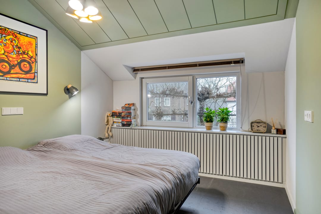 Eén van de slaapkamers geeft toegang tot een bergzolder.