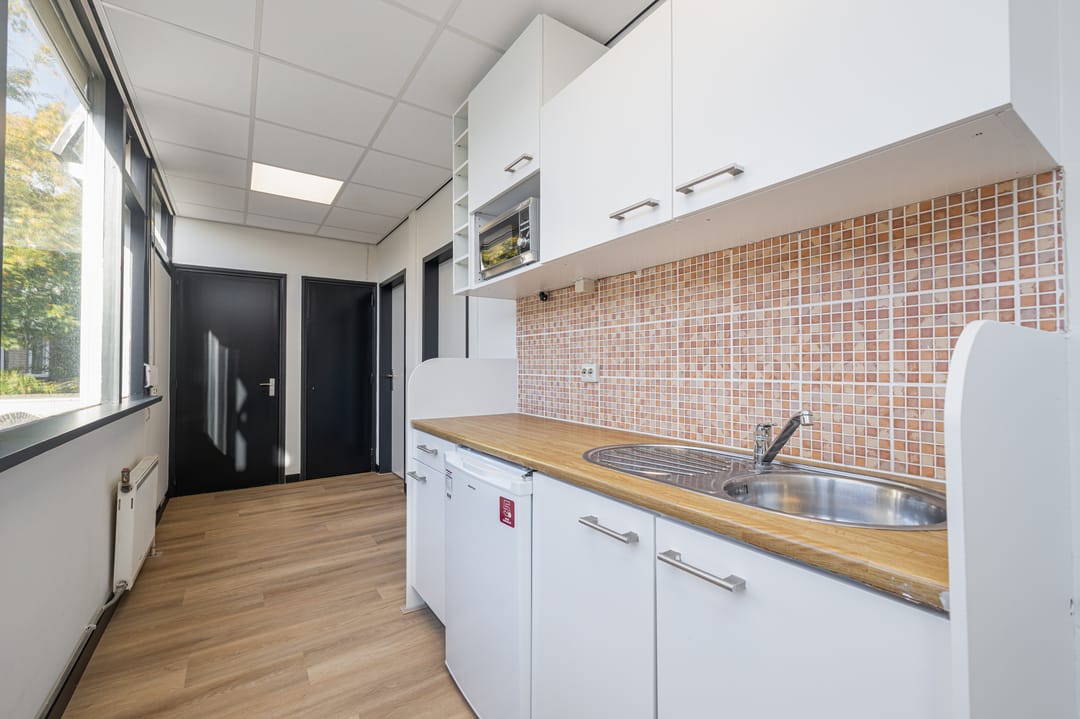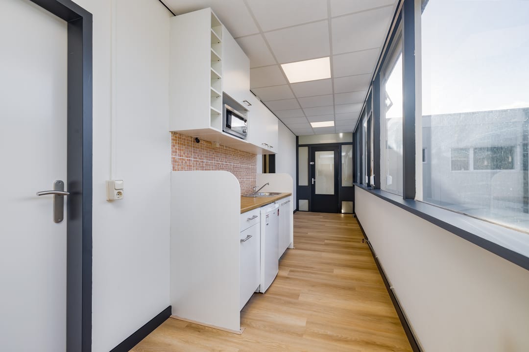 Bij binnenkomst stap je binnen in gang, voorzien van pantry. Deze gang geeft toegang tot de 3 kantoorruimtes (Unit 17,18 en 19), het toilet en een inbouwkast en beschikt over grote raampartijen met veel lichtinval, voorzien van zonwering.