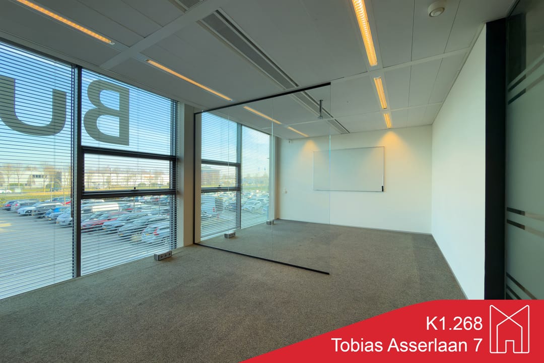 Unit K1.268 biedt een prettig werkklimaat met uitzicht over de voorzijde van het gebouw en het naastgelegen parkeerterrein. Deze representatieve ruimte is onder andere voorzien van:
