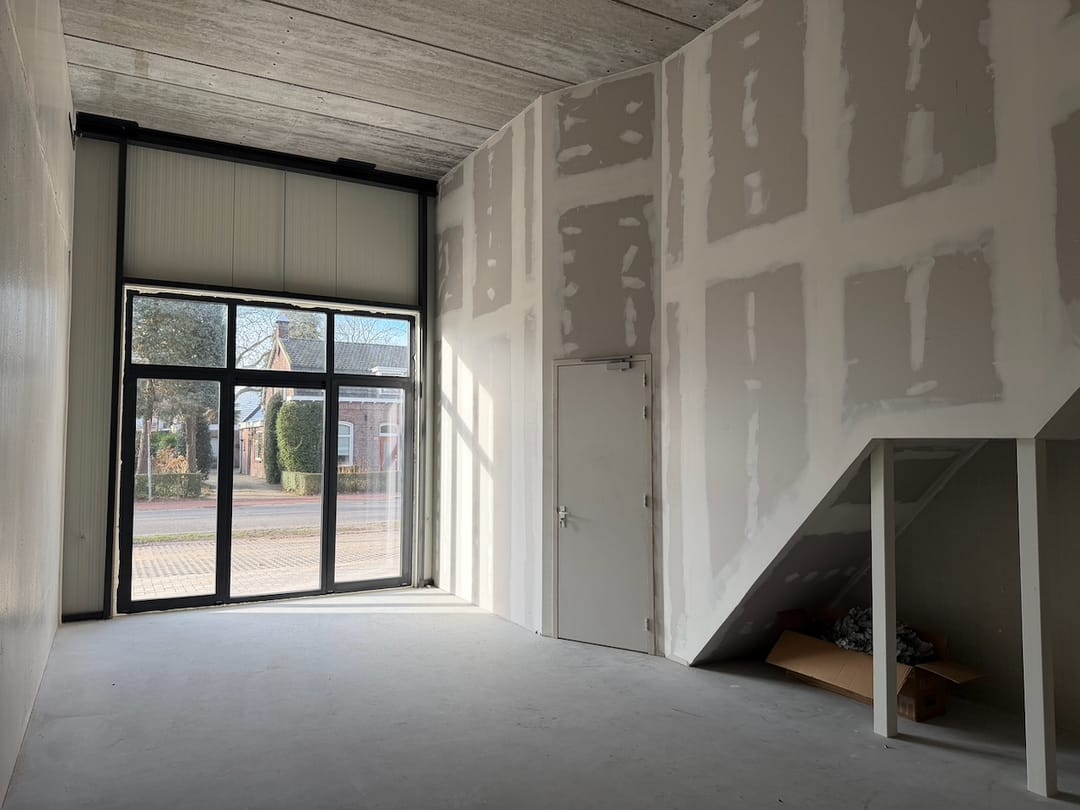 Entree middels een loopdeur, afgesloten opgang met meterkast, doorgang naar de bedrijfsruimte/showroom en een trapopgang naar de etage welke als kantoor gebruikt kan worden.