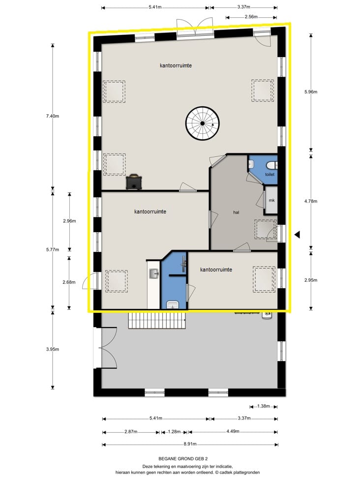 Het betreft circa 120 m² kantoorruimte gelegen op de begane grond en vide van het bijgebouw van de woonboerderij. Het object kent een fraai afwerkingsniveau.