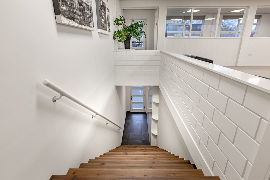 De unit is gelegen op de eerste verdieping van het complex met op de begane grond een drukkerij.