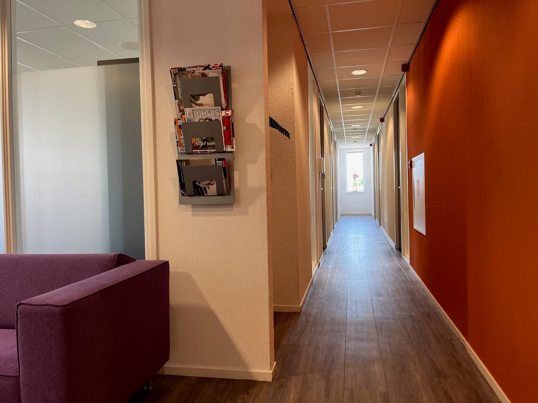 De verdiepingen zijn bereikbaar via een eigen entree, voorzien van toegangscontrole. Zowel de trap als de lift biedt toegang tot de verschillende verdiepingen. Deze kantoorruimte bevindt zich op de 2e verdieping van het complex en heeft een totale oppervlakte van circa 61 m² v.v.o. Dit omvat een algemene ontvangst-/wachtruimte, toiletgroep, en een panty. De gemeenschappelijke ruimten worden gedeeld met de hoofdhuurder. De kantoorruimten hebben een netto oppervlakte van respectievelijk 19 en 24 m², met mogelijkheid om een extra kantoorruimte van ca. 19 m² bij te huren.
