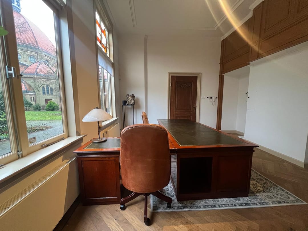 Een kantoorruimte (kamer 0.04) gelegen op de begane grond van een karakteristiek 18e-eeuws herenhuis in het centrum van Beverwijk. Het betreft één zelfstandige kamer op de begane grond met een oppervlakte van ca. 34,5 m² BVO, vermeerderd met ca. 12,9 m² aandeel in de algemene ruimte. Het object is geschikt voor diverse zakelijke doeleinden, waaronder kantoor en dienstverlening conform bestemming.