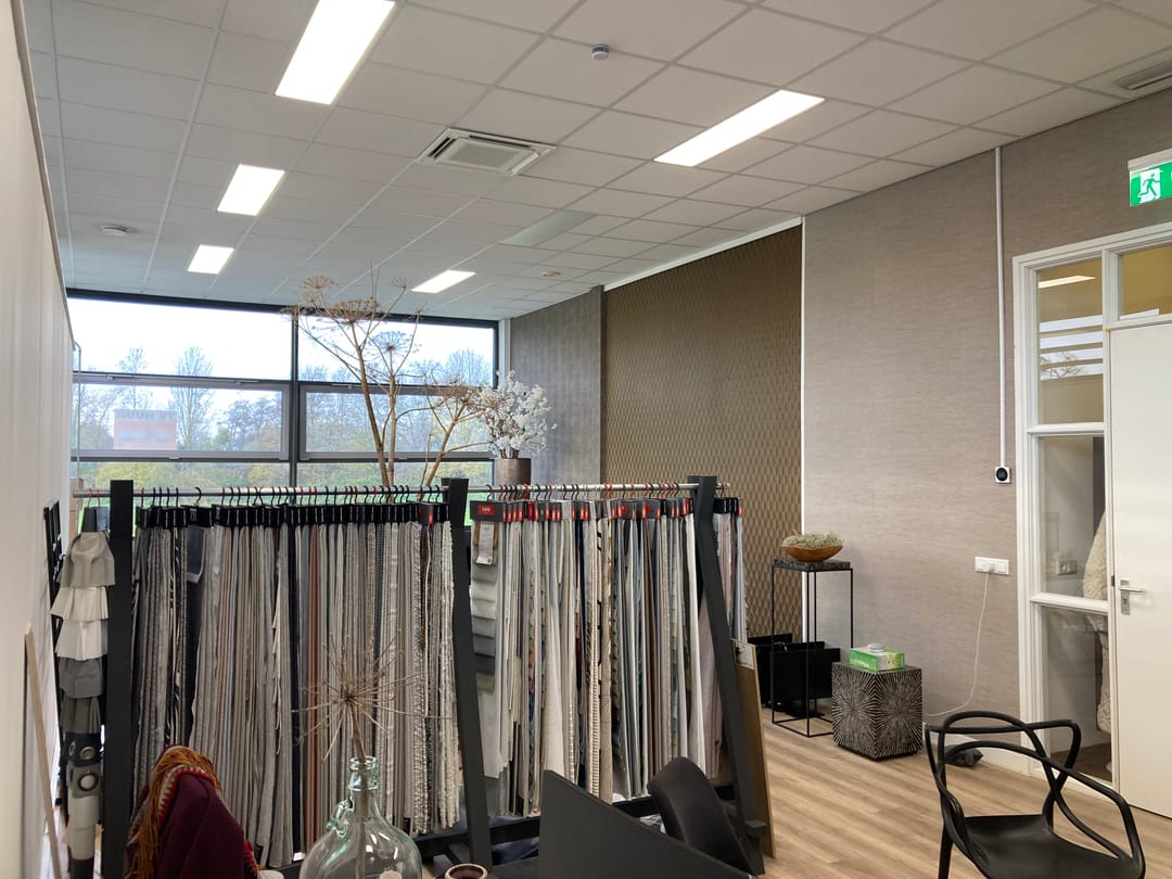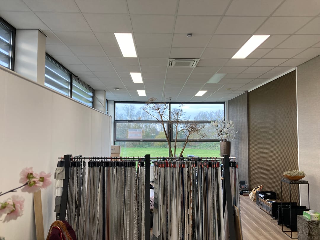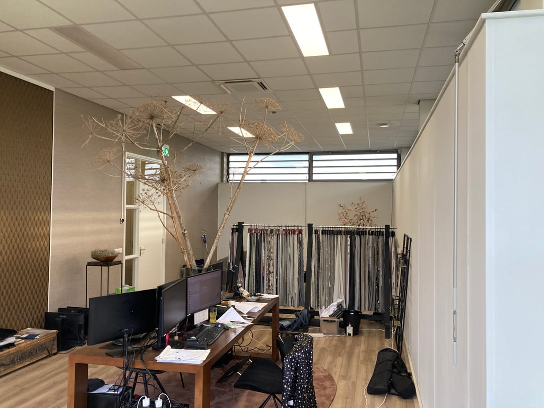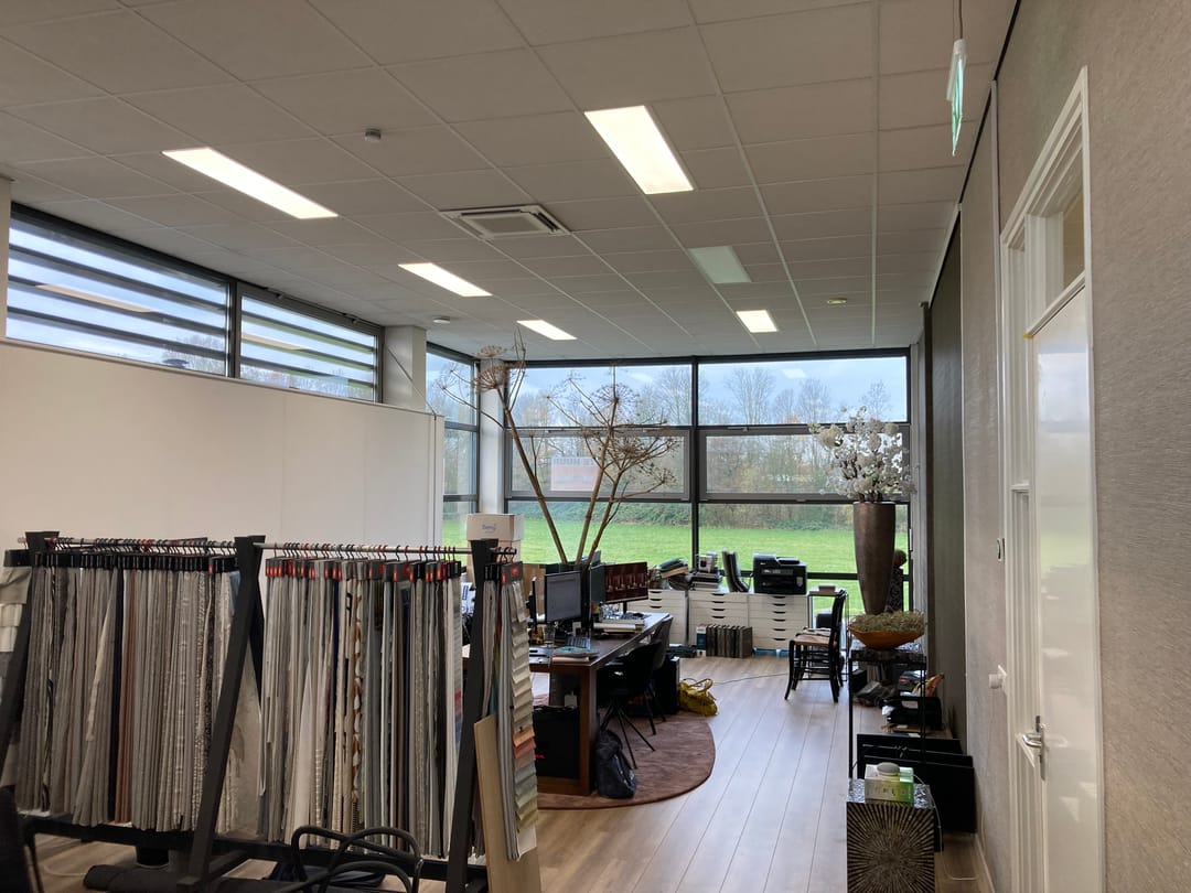 De ruimte is voorzien van lichte wandafwerking, tapijt, kabelgoten en systeemplafond met verlichting en airconditioning. De bovenlichten en de brede raampartij aan de voorzijde geeft veel licht in de kantoorruimte waarmee een plezierige werkomgeving.