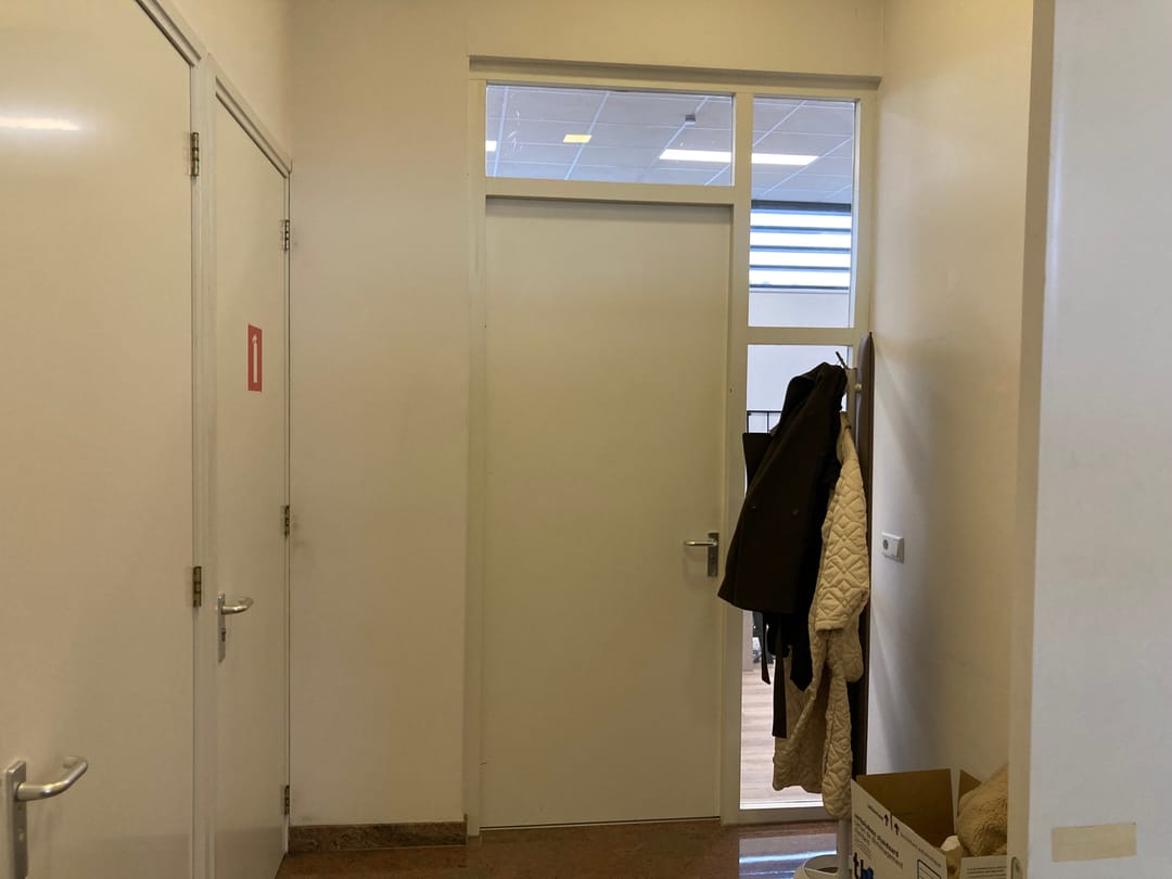 Vanuit de gezamenlijke entree biedt een hal met trapopgang toegang tot de hal op de verdieping. Deze hal geeft toegang tot de 2 kantoorruimten op de verdieping alsmede een gezamenlijke keuken en toiletruimte.