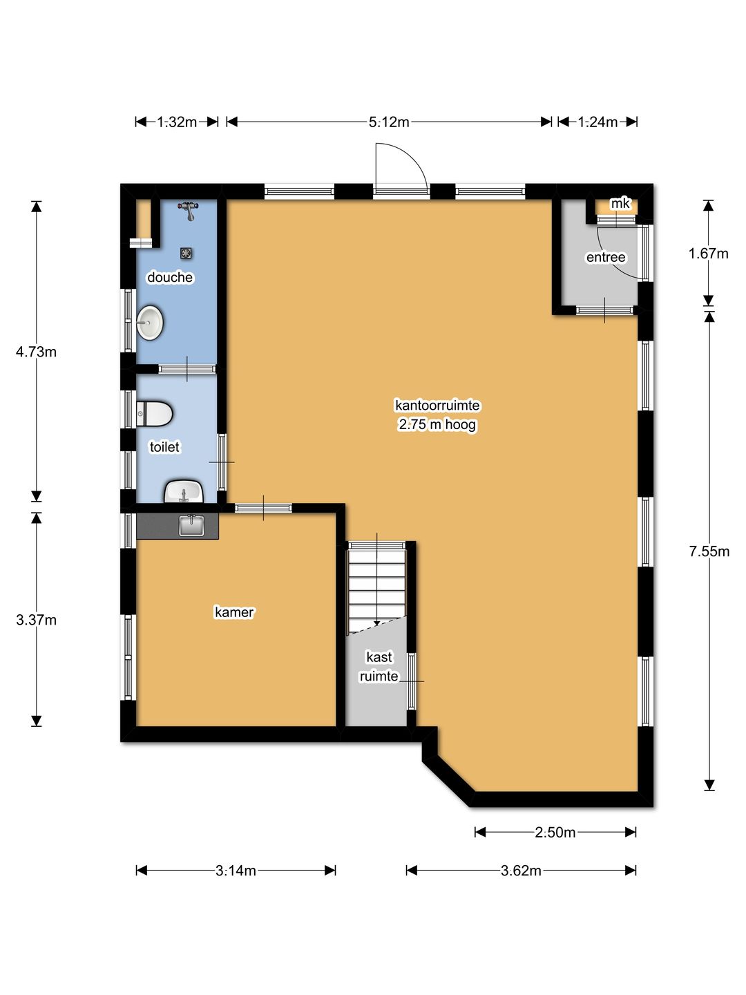 open ruimte t.b.v. werk-/vergaderruimte, berging en opstelling cv-ketel.