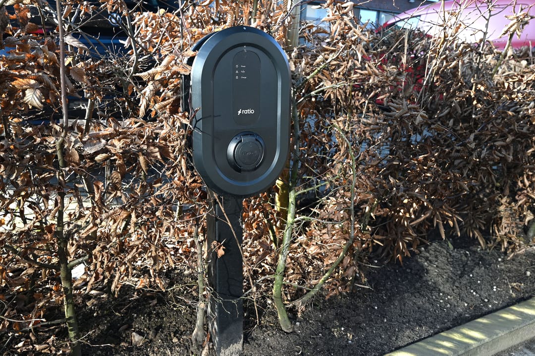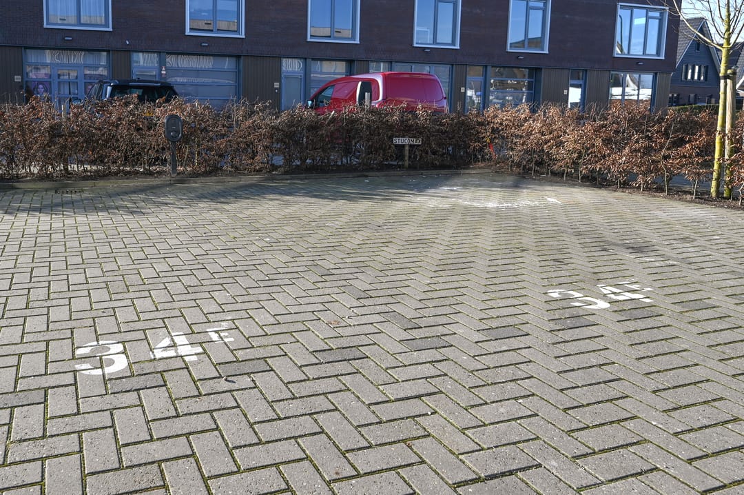 Twee (2) parkeerplaatsen gelegen op voorgelegen bestraat terrein v.v. één EV-laadpaal.