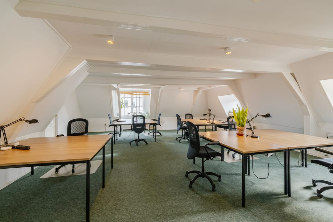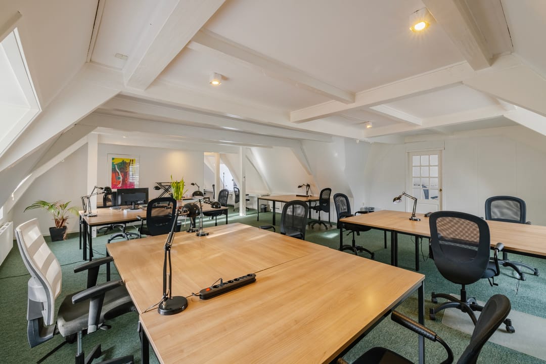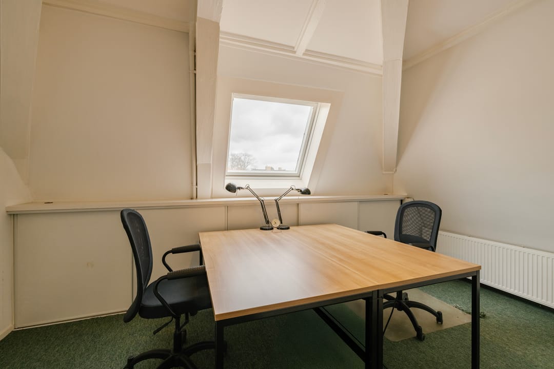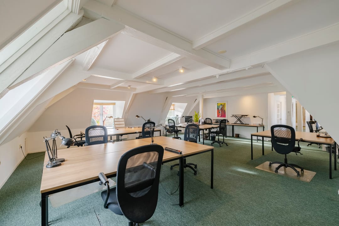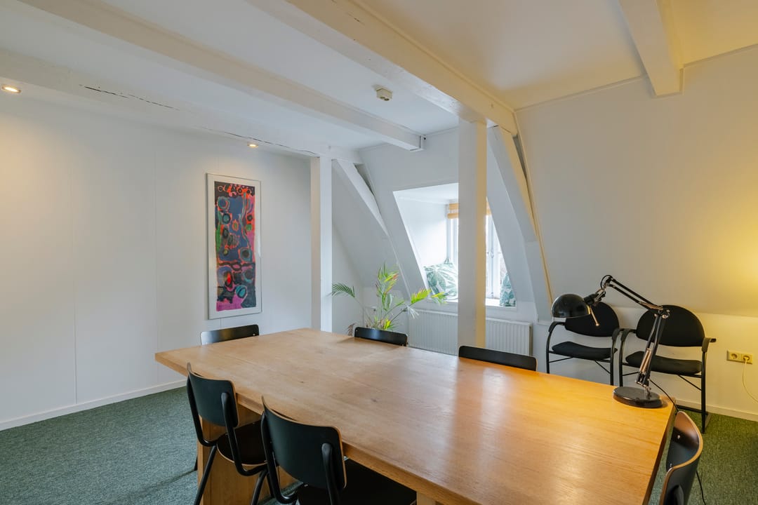 - Het betreft een kantoorruimte van ca. 169 m² VVO en is gelegen op de tweede verdieping. De ruimte beschikt over een keuken, meerdere spreekkamers en een open kantoorindeling. Dankzij de sfeervolle dakkapellen komt er veel natuurlijk licht binnen en biedt de ruimte een mooi uitzicht. Het sanitair wordt gedeeld met andere huurders.