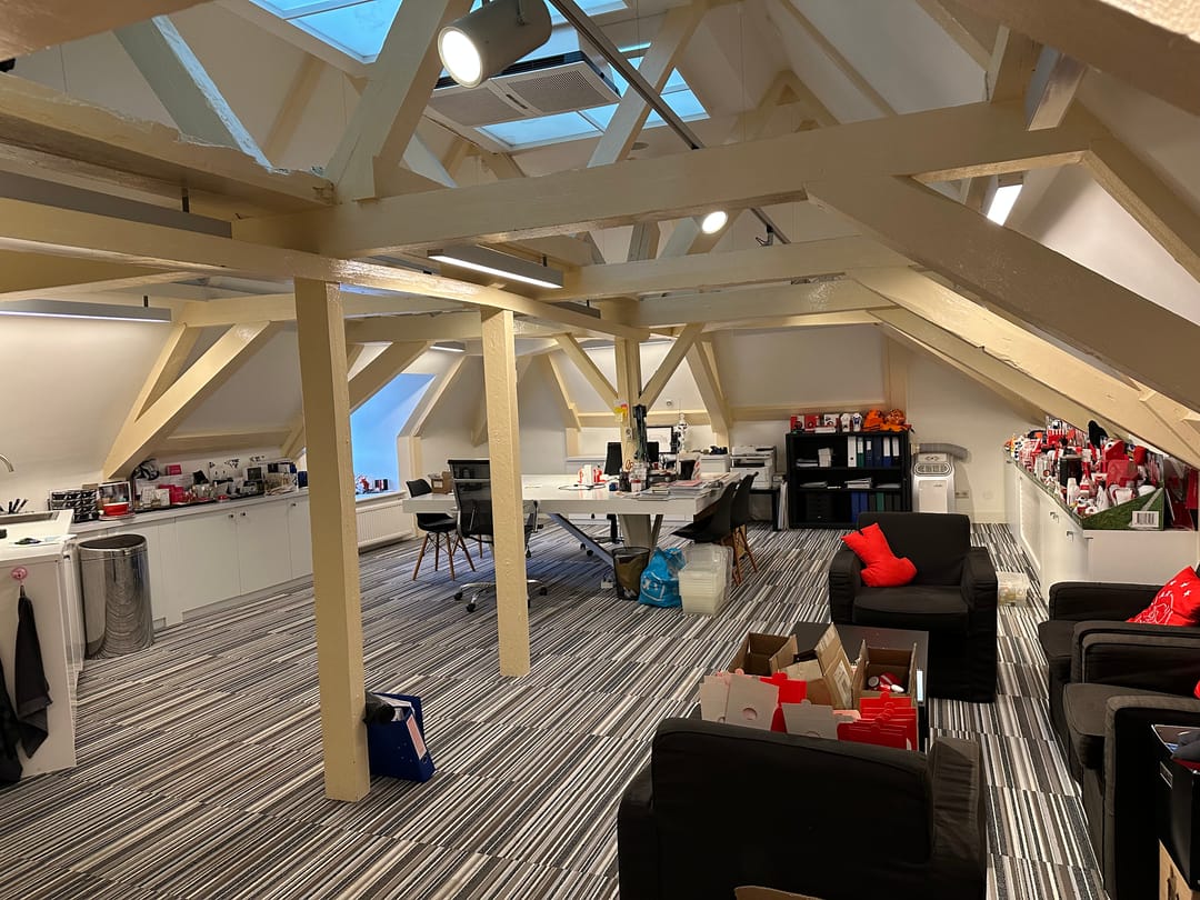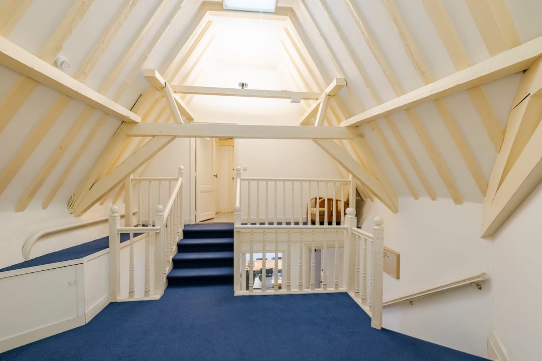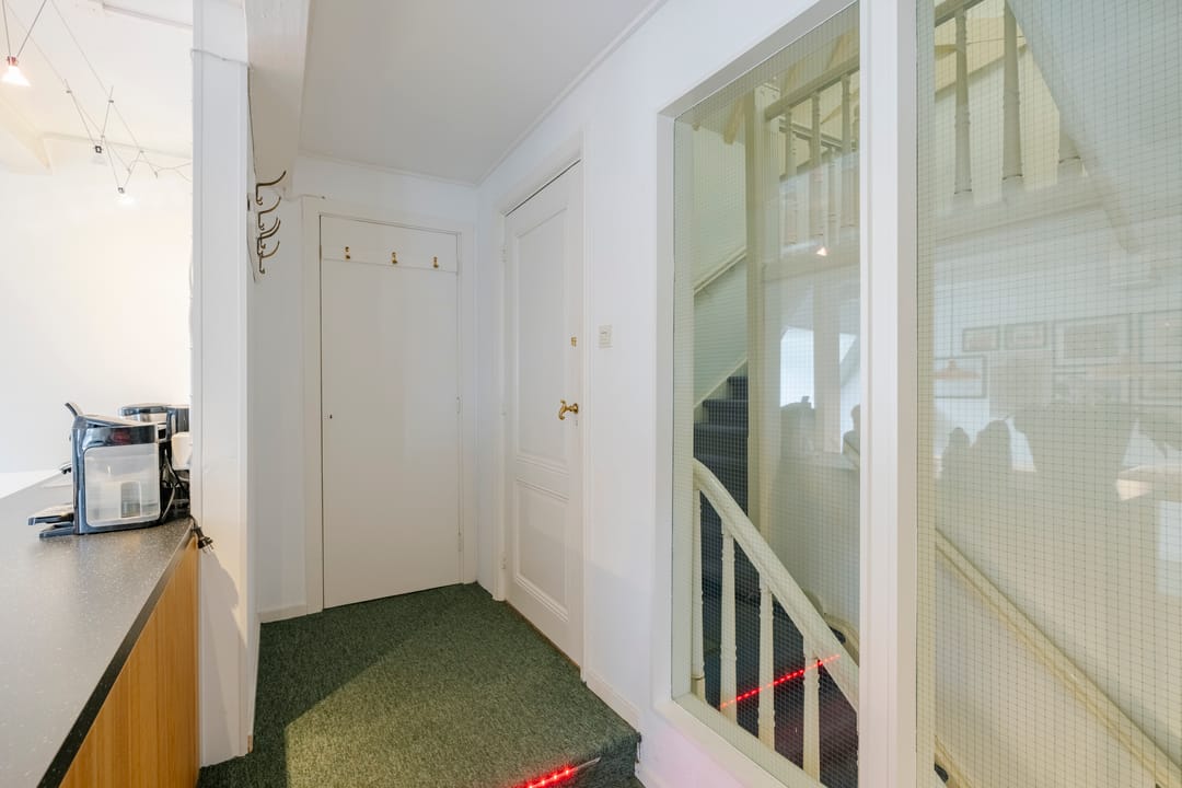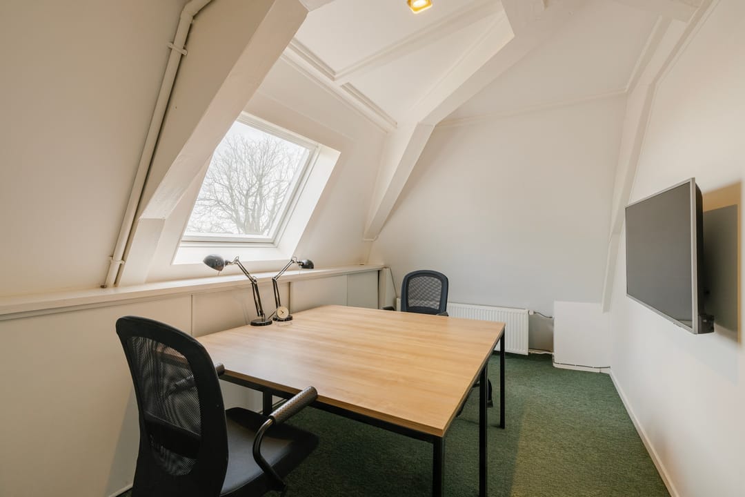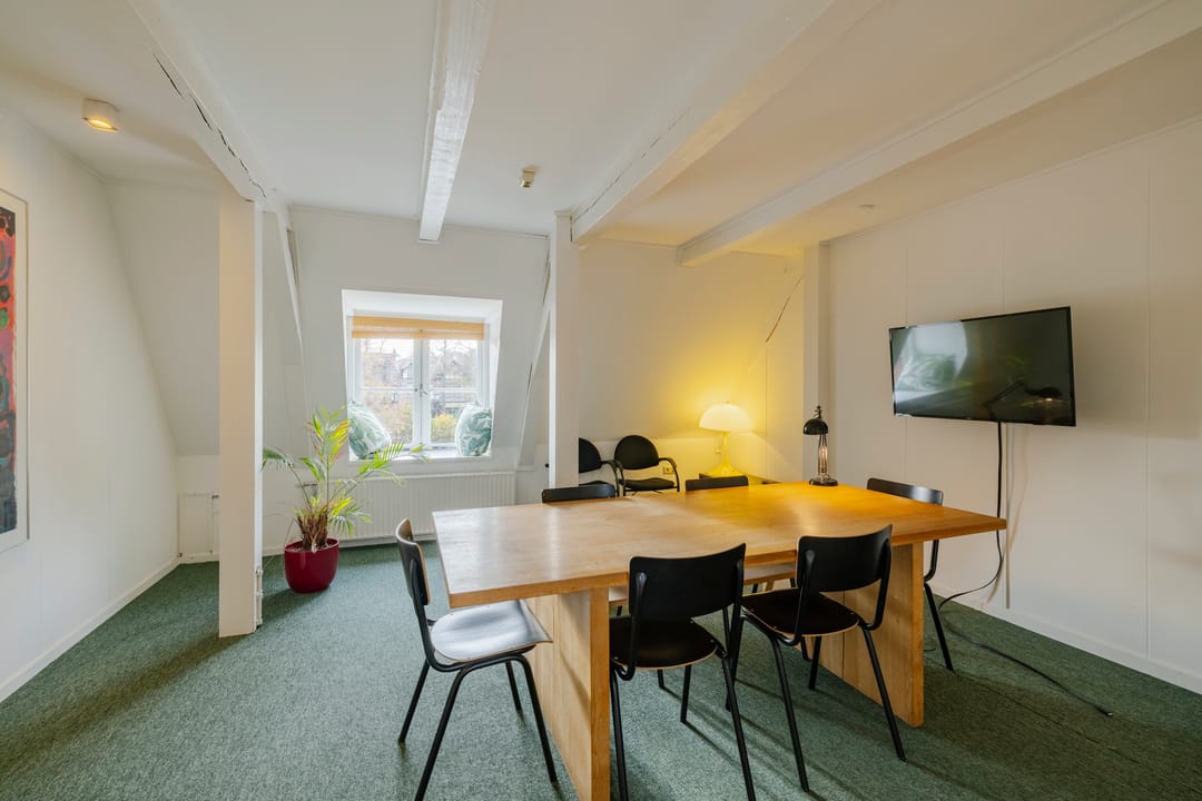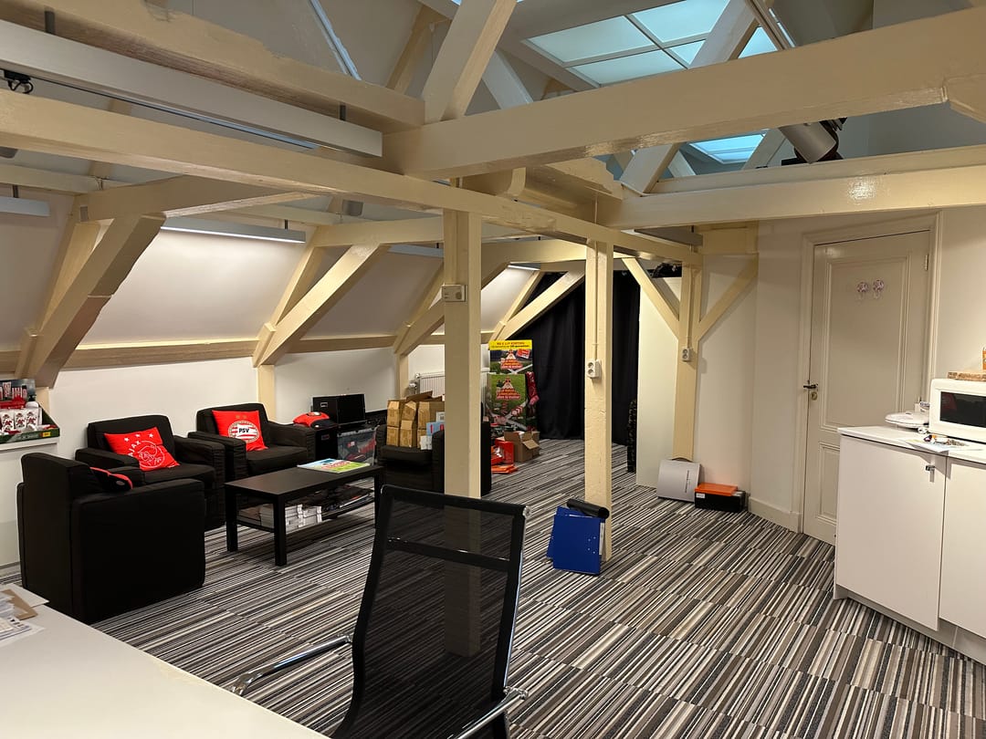 - Het betreft een kantoorruimte van ca. 169 m² VVO en is gelegen op de tweede verdieping. De ruimte beschikt over een keuken, meerdere spreekkamers en een open kantoorindeling. Dankzij de sfeervolle dakkapellen komt er veel natuurlijk licht binnen en biedt de ruimte een mooi uitzicht. Het sanitair wordt gedeeld met andere huurders.