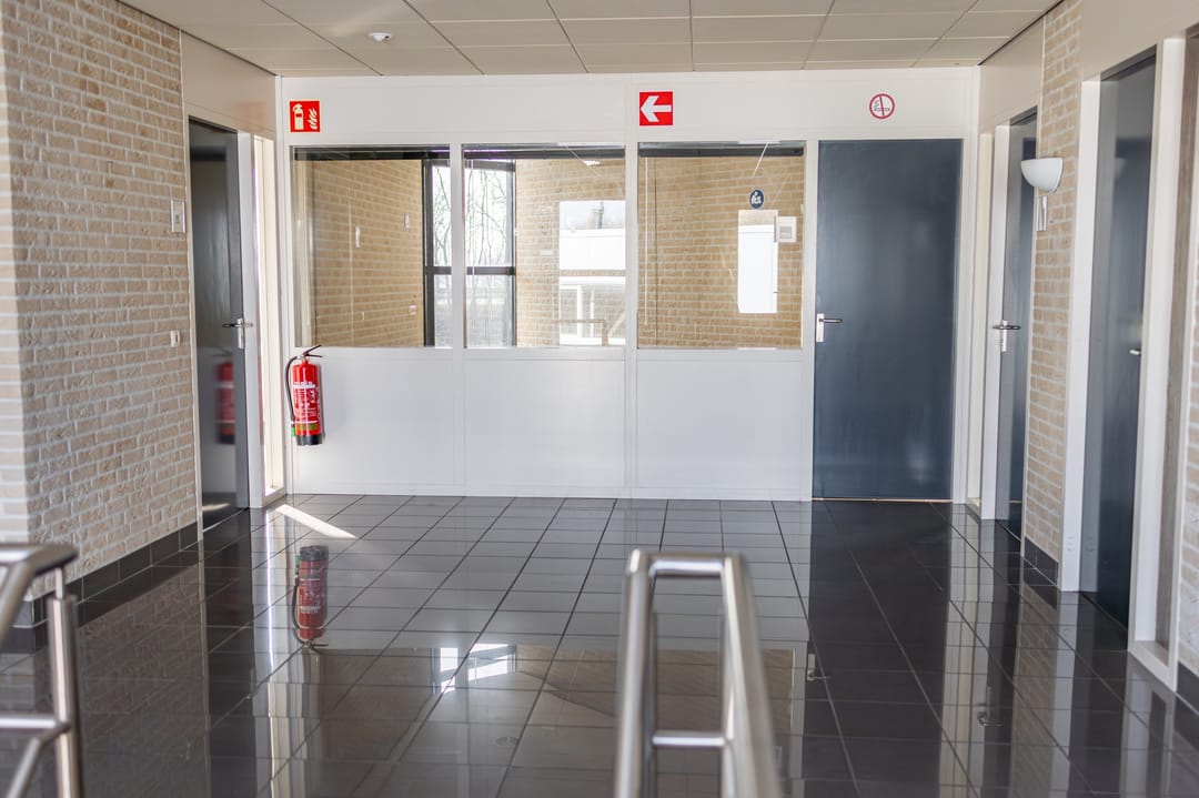 - Mechanische ventilatie, inbouwarmaturen, te openen ramen, kabelgoten, systeemplafond, toilet, verwarming en kamerindeling