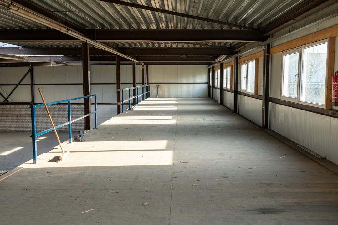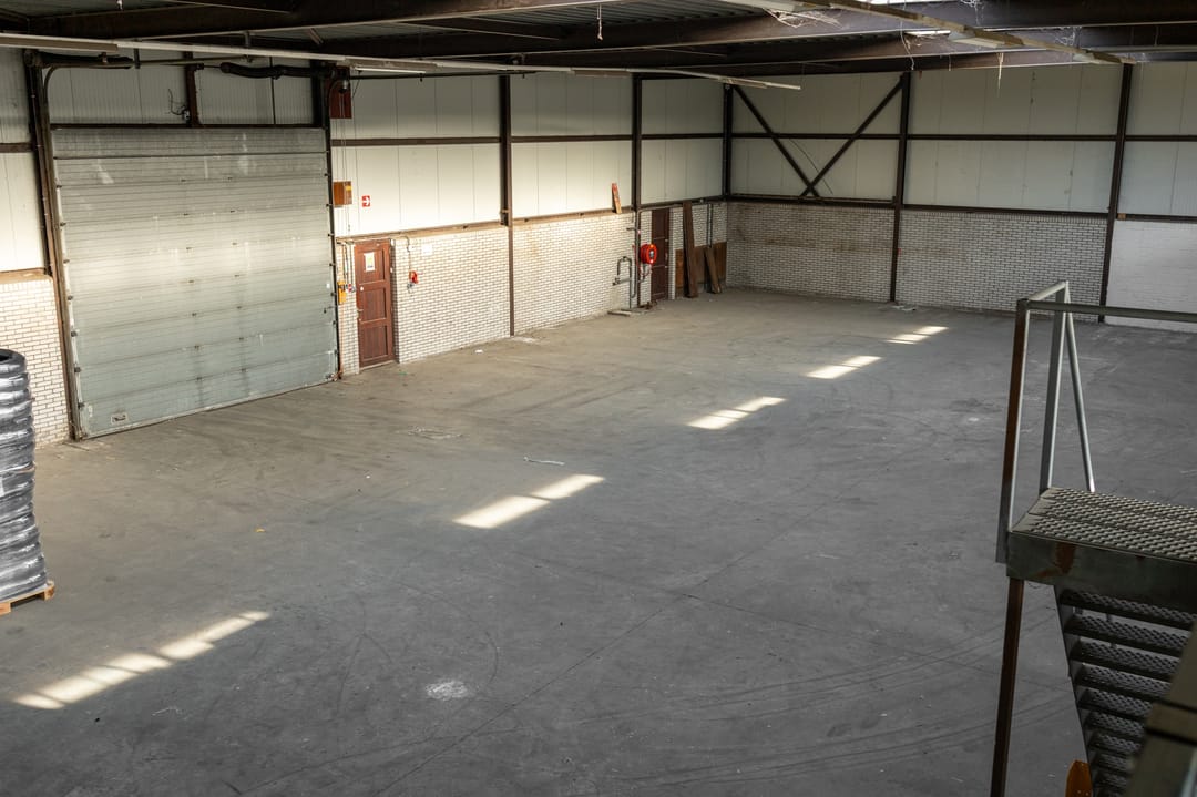 Bedrijfshal - 30 x 20 m met lichtstraat en royale overheaddeur ( 5 x 4,5 m ). zolderopslagruimte 30 x 5 m met royaal lichtinval-vlak/raampartijen, kantine met toiletgroep, drie aparte hardhouten toegangsdeuren.